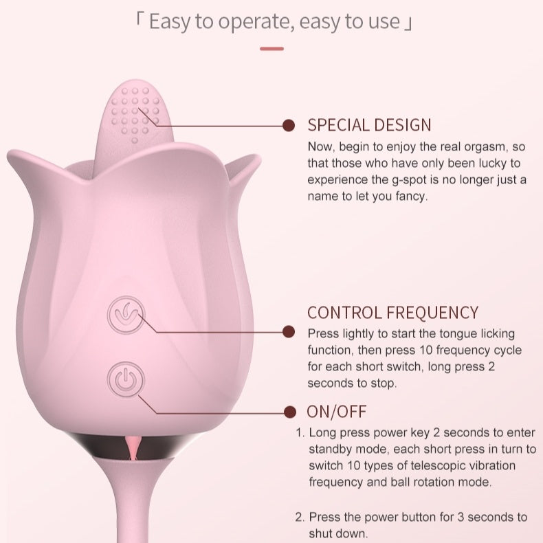 Lurevibe - 3-in-1 Blooming Sexy Pink Rose Toy Rotating Pearls Telescopic Tongue-licking Vibrator