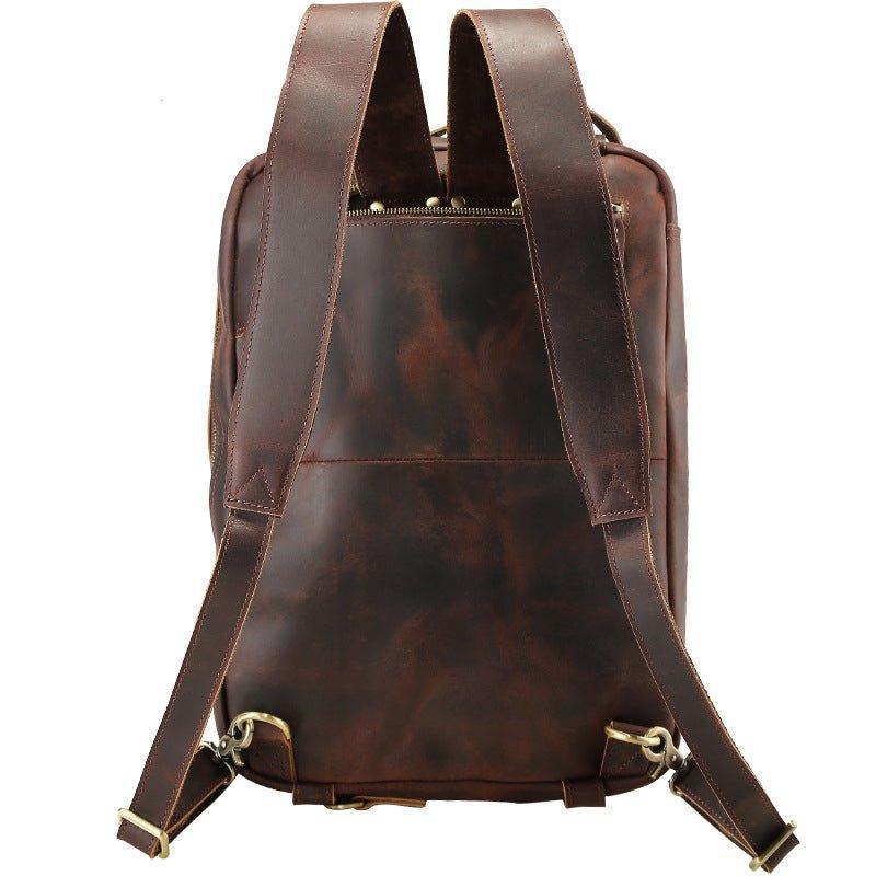 Premium Material: Retro Convertible Messenger Backpack is made of quality real full grain leather, high quality hardware, 2mm thickness.Strong double stitched seams,shoulder strap is adjustable and removable.