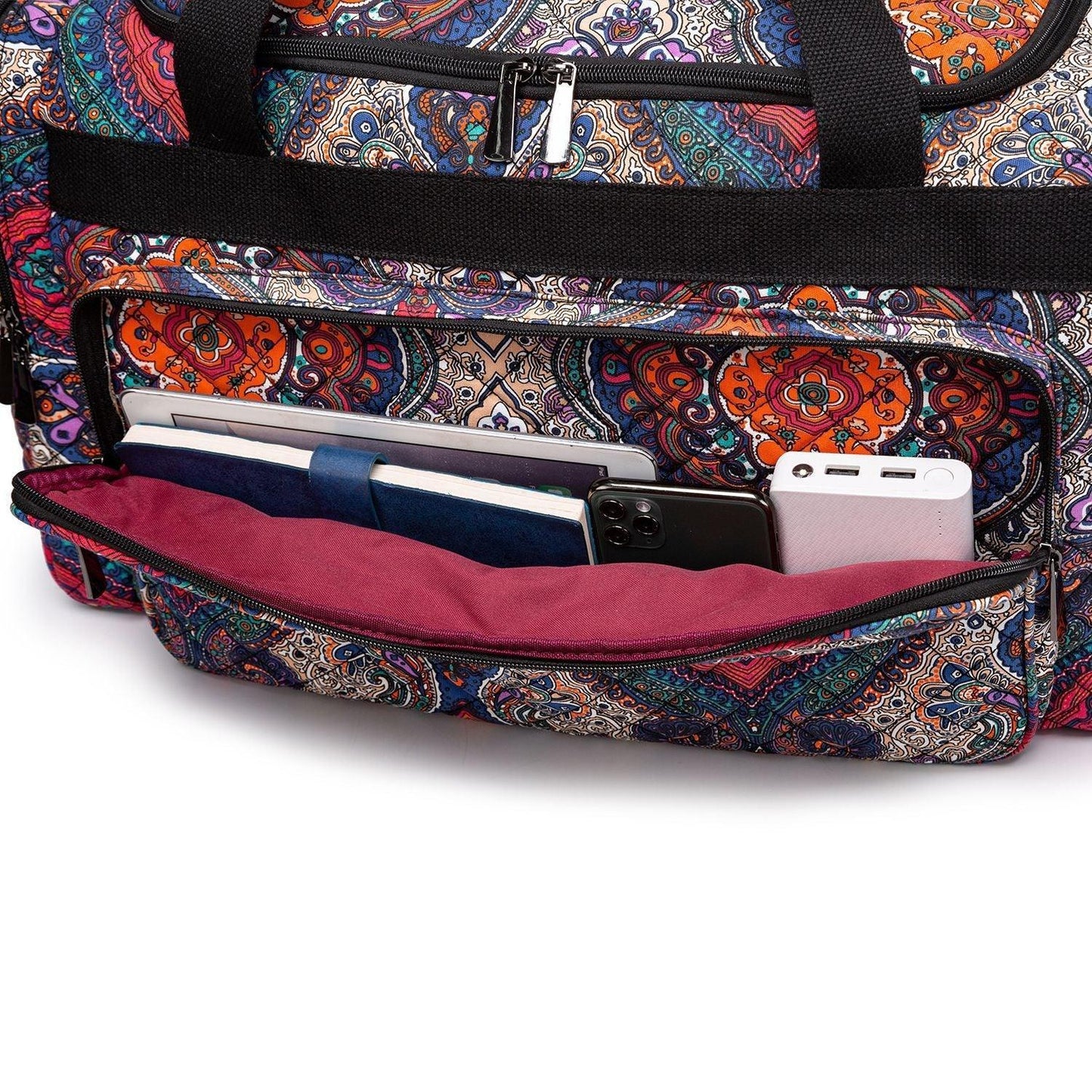 The unique design of this bag makes it the perfect choice for women who want to combine fashion with functionality. Whether you're heading on a city break, a beach vacation or a weekend getaway, the Woosir Boho Weekender Bag Canvas Travel Duffel from Woosir is the perfect travel accessory.Order now and experience the ultimate blend of style and convenience on your next adventure!