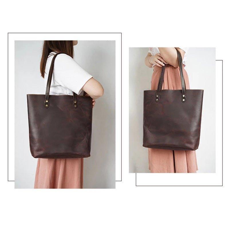 Woosir Brown Women Leather Tote Bag
