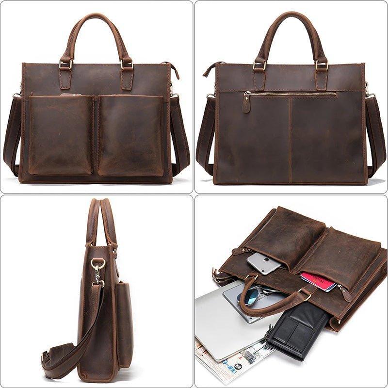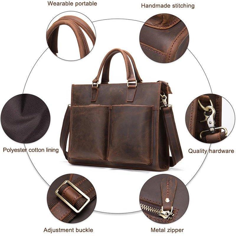 -Anti-dirty leather laptop bag , light weight,also can holds A4 documents, 15 inch laptop, books,conference files,checkbook, pens,wallet,phone and other essentials etc. Well proportioned design leather computer bag for business workplace,business trip, and daily work men bag.