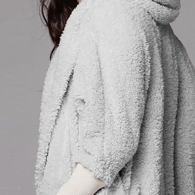 Libiyi-Fluffy Hooded Open Front Teddy Coat & Short Sets