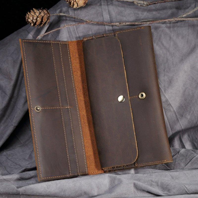 Woosir Crazy Horse Leather Men Wallets Long Style