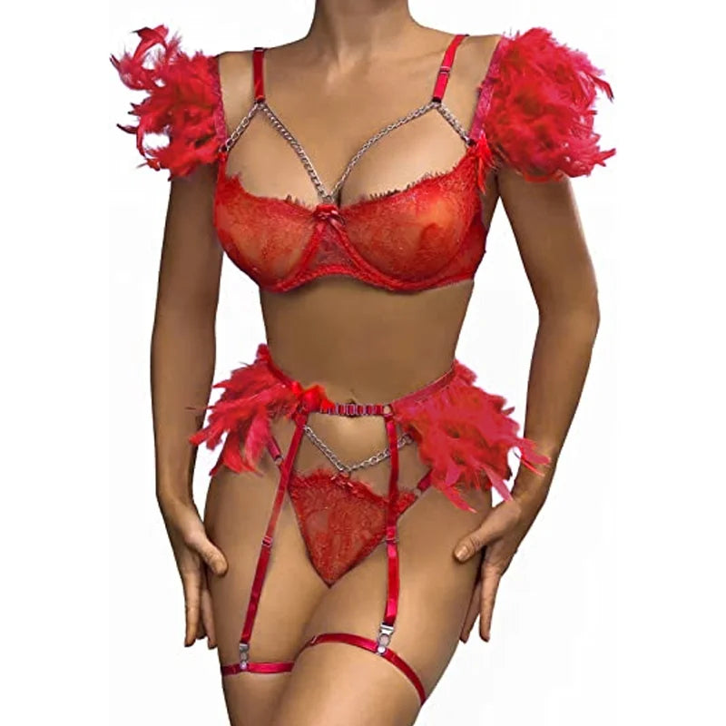 Hot Night Angel Feather Lace Ultra-thin Sexy Lingerie Suit