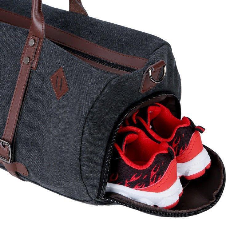 The Large Travel Canvas Duffle Bag is perfect for frequent travelers who need a reliable bag that can hold all their essentials.Made with high-quality cotton canvas material, this bag is durable and long-lasting. It is designed to withstand the wear and tear of frequent travel.