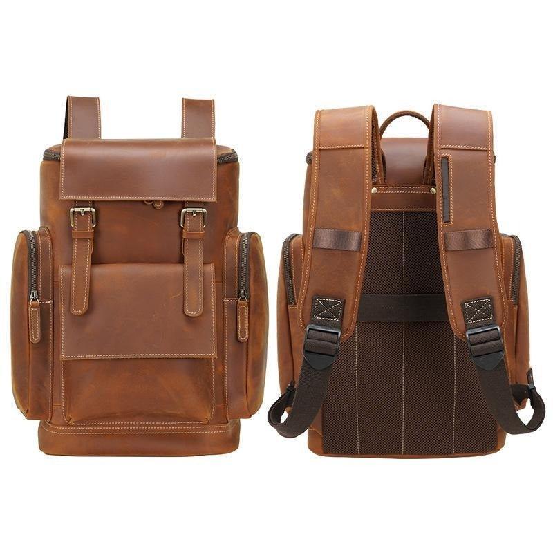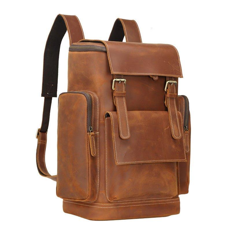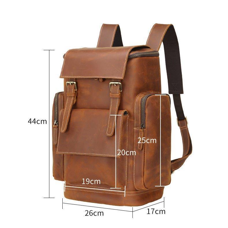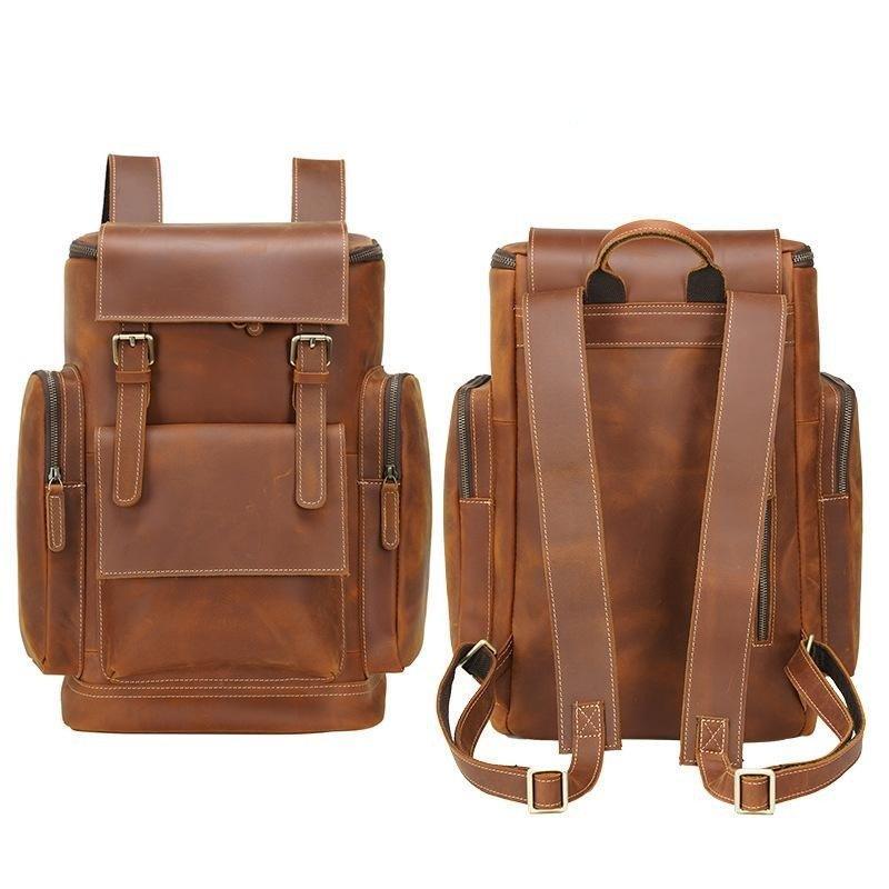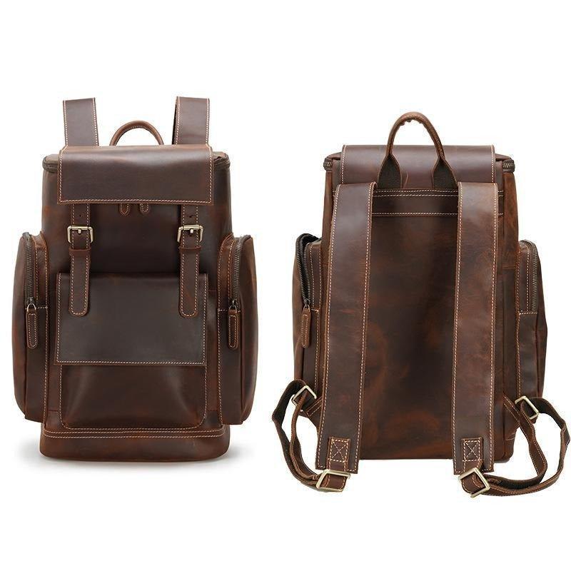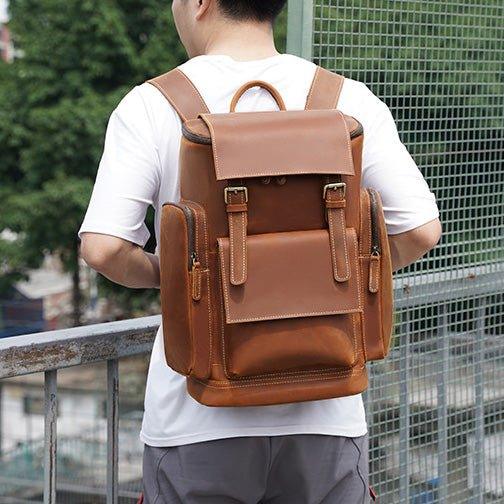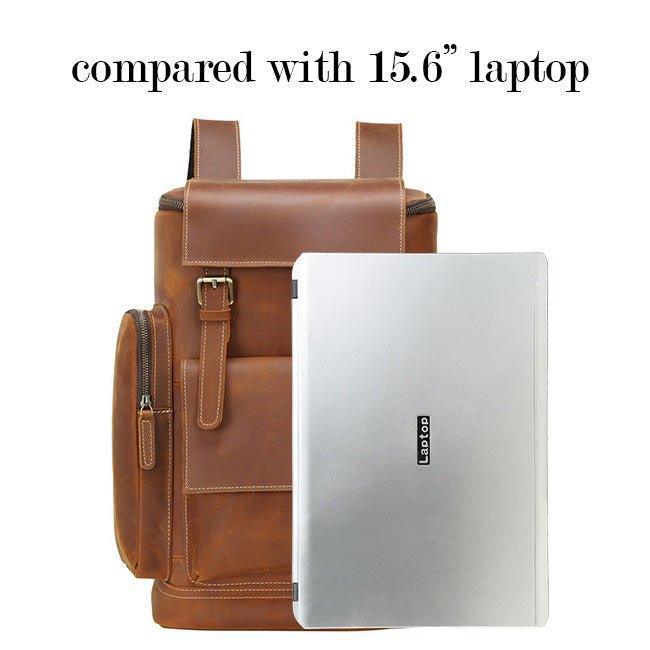 This large leather laptop backpack is ideal for daily use such as school,work,traveling,hiking.Flap cover with 2 magnet buckles and drawstring colsure at main compartment do secure your items.