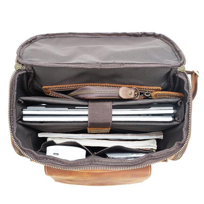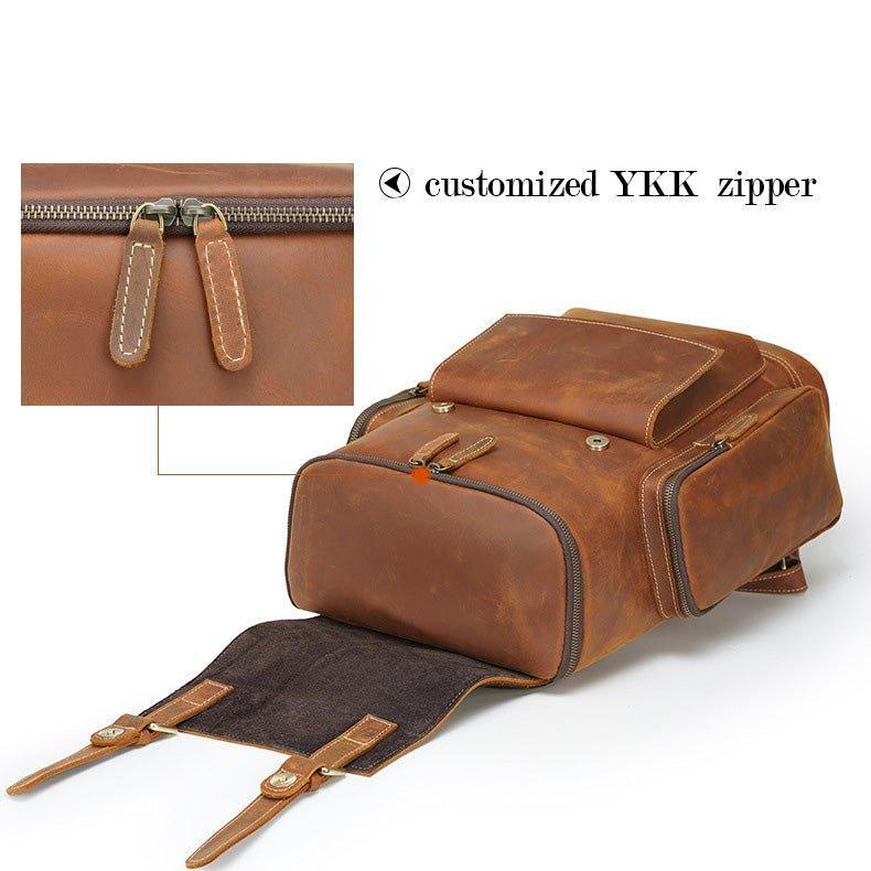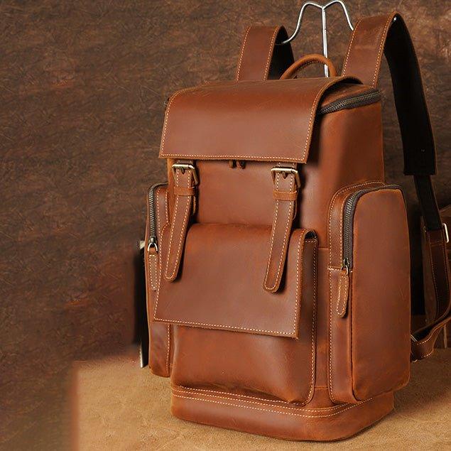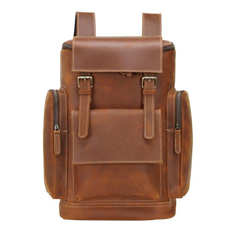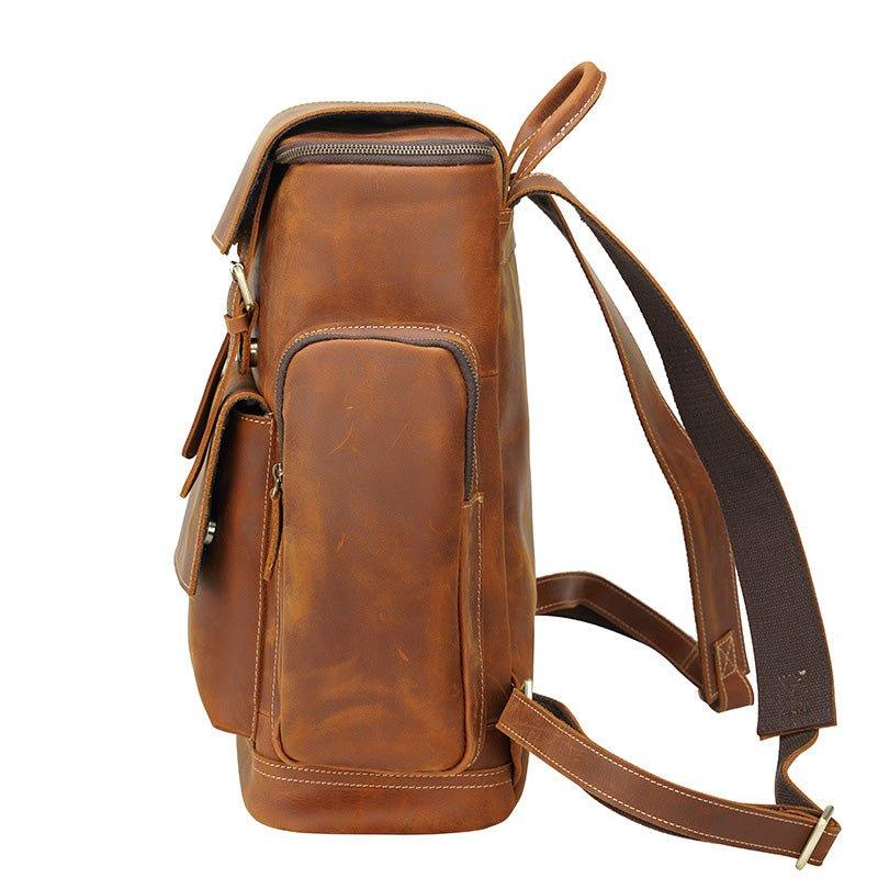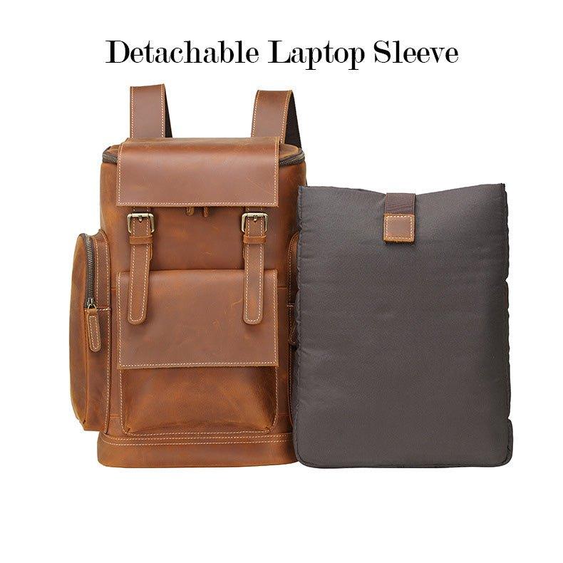 This large leather laptop backpack is ideal for daily use such as school,work,traveling,hiking.Flap cover with 2 magnet buckles and drawstring colsure at main compartment do secure your items.