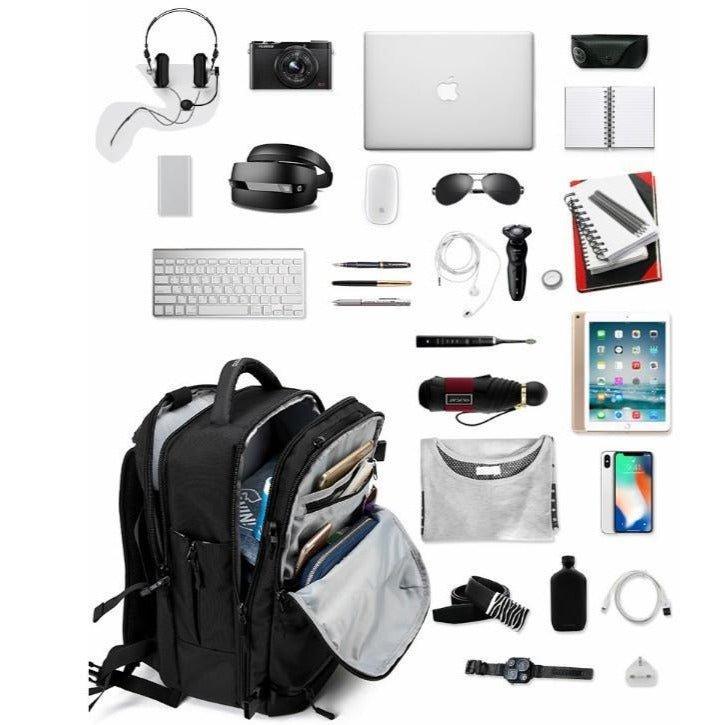 CHARGING DESIGN: With the external USB charging design, you can easily and conveniently charge your phone, tablet and other devices without opening your backpack. You only need to connect the power bank with the included data cable in the backpack and insert the USB port of charging cable into the external charging interface.