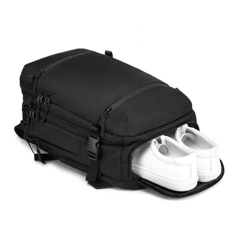 BOTTOM SHOES COMPARTMENT: An independent zipper shoes campartment located in the bottom with 2 air hole for storing sport shoes or dirty clothes, separating them from clean clothes.