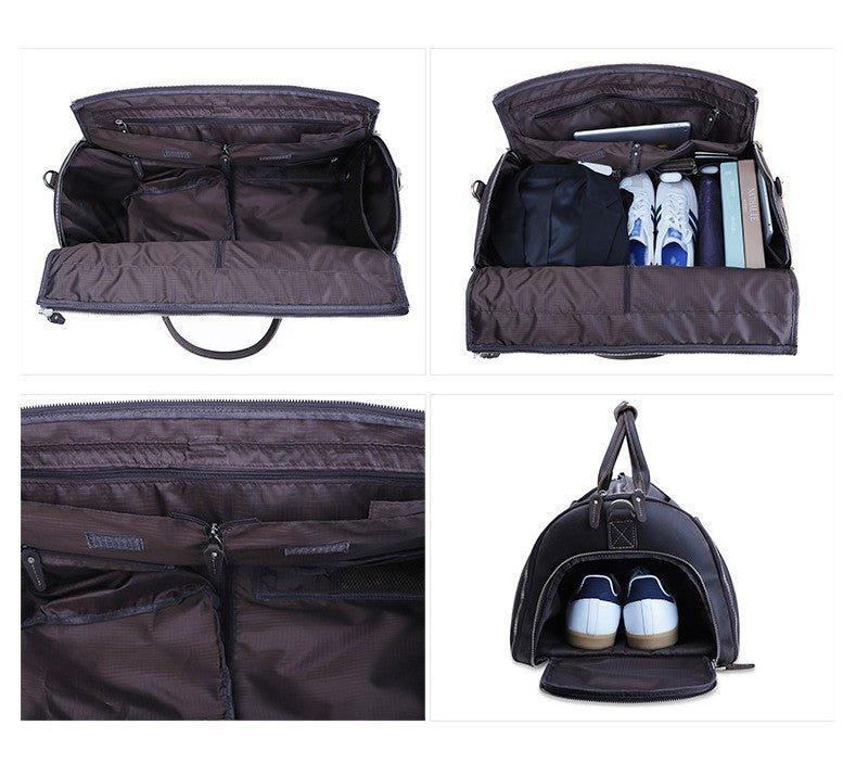 Leather Garment Bag Duffel with Shoe Compartment
