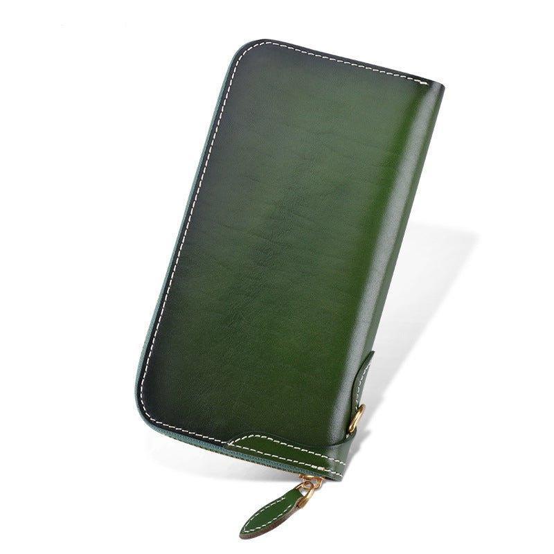 This cowhide leather long wallet features 24 card position,1 mobile position and 1 cash position can reduce shoulder load and travel concept size .Meet all your daily needs.
