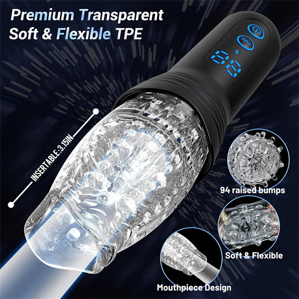 - 【Uniquely Designed Masturbator Jayce】: Our masturbators for men are different from other masturbators. Our sex toys for men solo are designed with a transparent case to give you a visual effect. There is an electronic display on the handle of the sex toy for men, you can know which frequency and function you use, it is easy for you to adjust the frequency and function, you can better choose your favourite mode and frequency.
