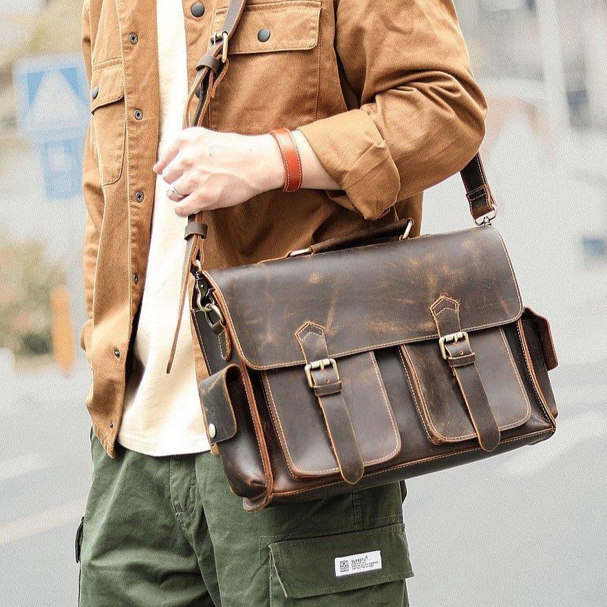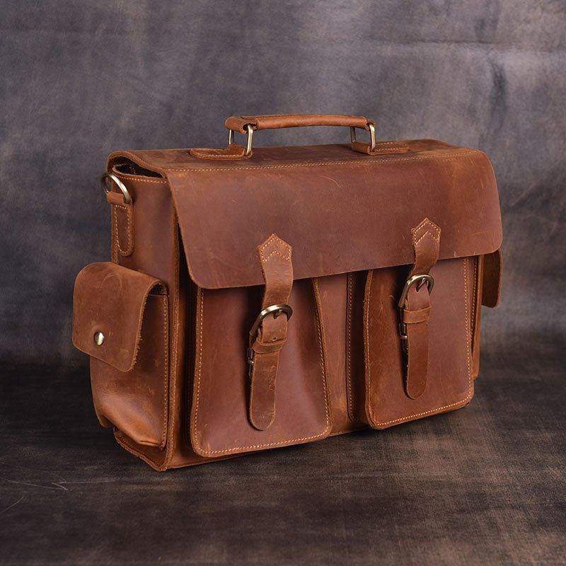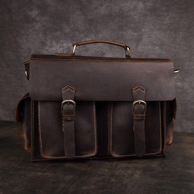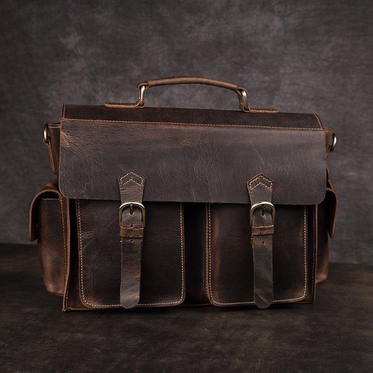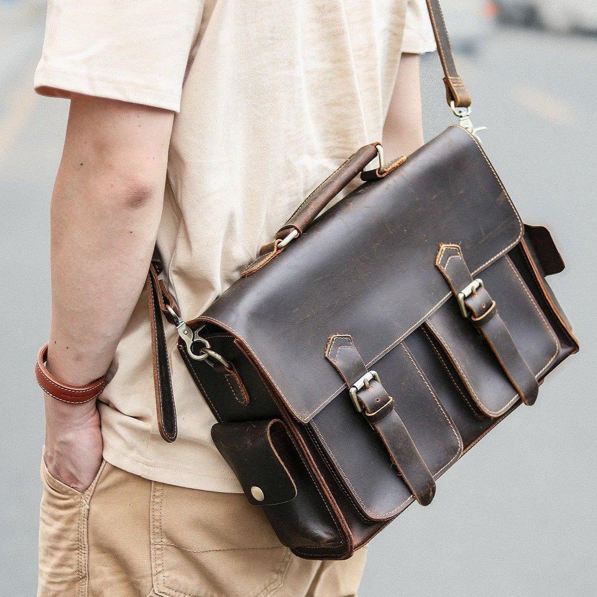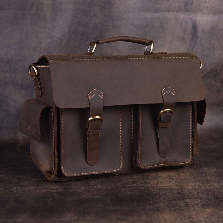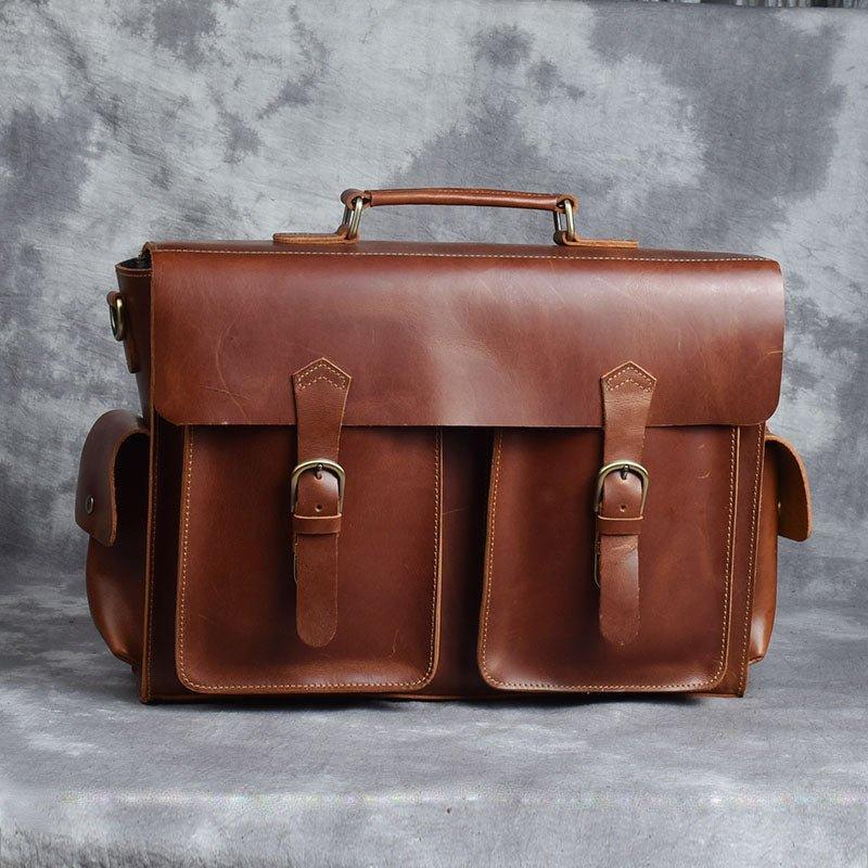 This MENS BRIEFCASE HANDBAG is crafted from pure full grain leather imported directly from Italy, decorated with bronze-coloured hardware for a professional and trendy yet sturdy appearance.