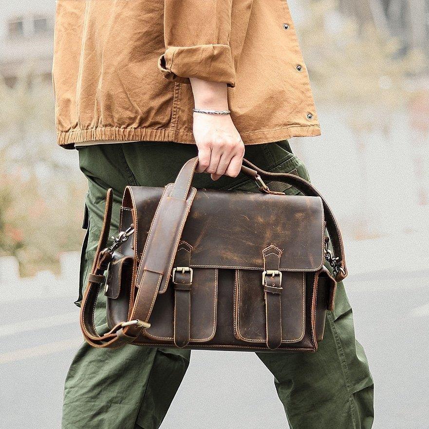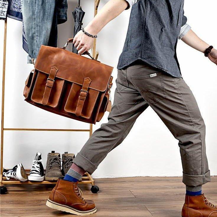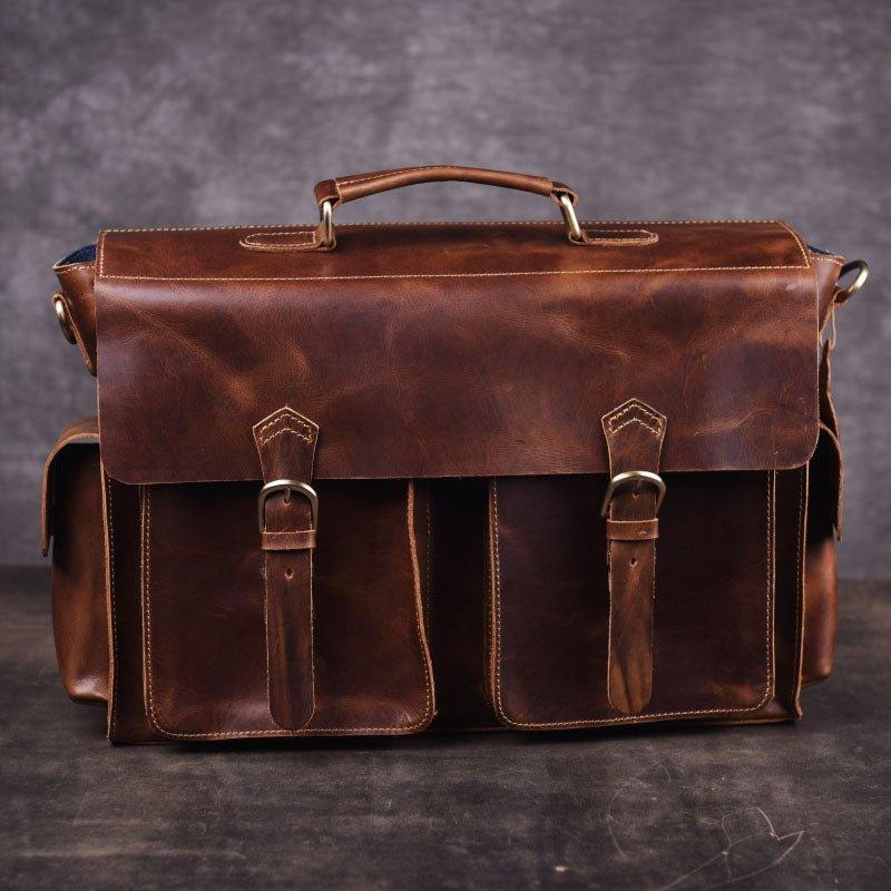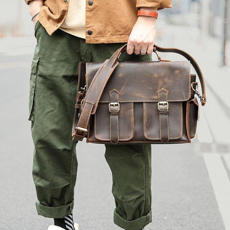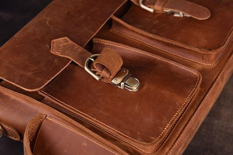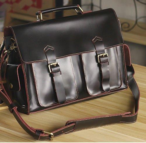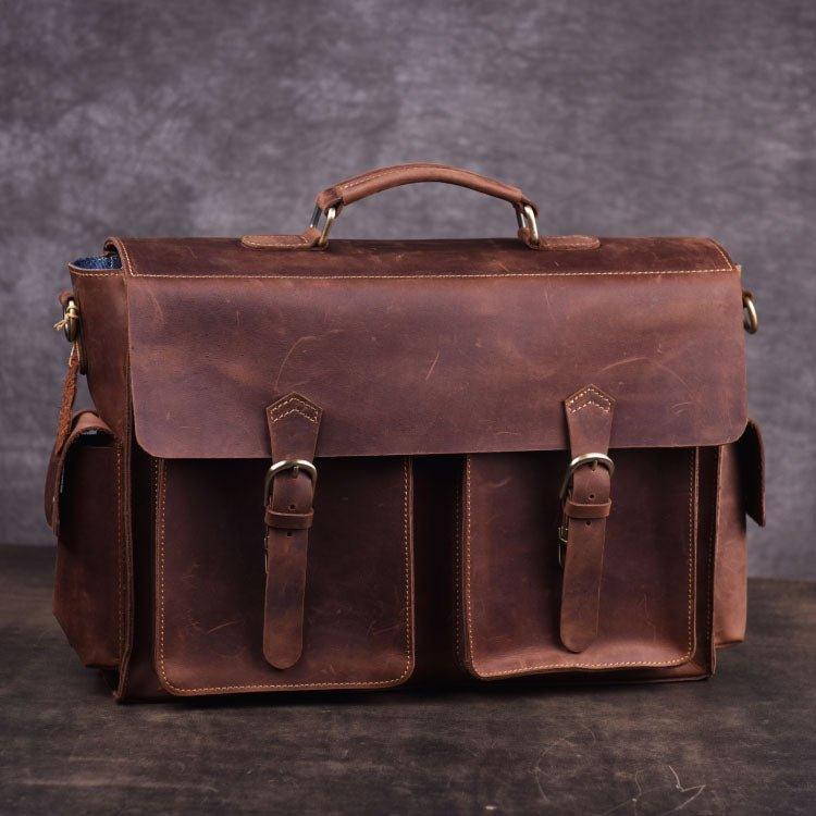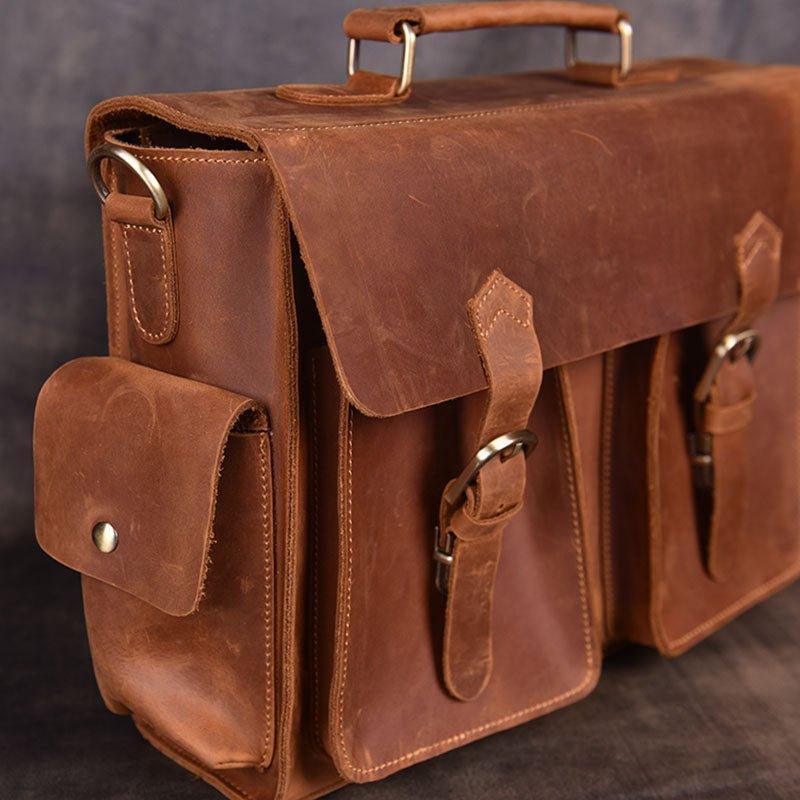 This MENS BRIEFCASE HANDBAG is crafted from pure full grain leather imported directly from Italy, decorated with bronze-coloured hardware for a professional and trendy yet sturdy appearance.