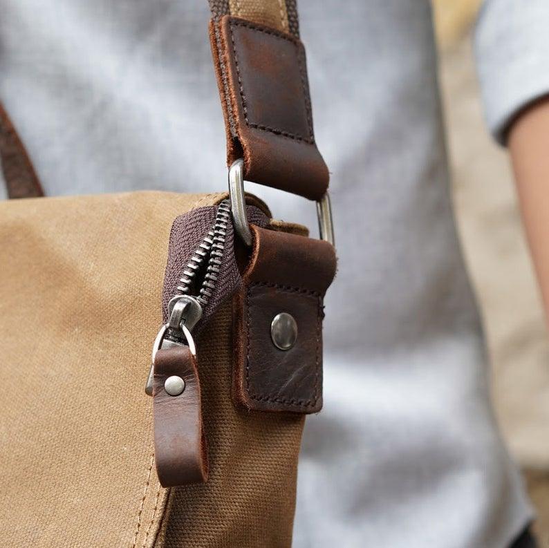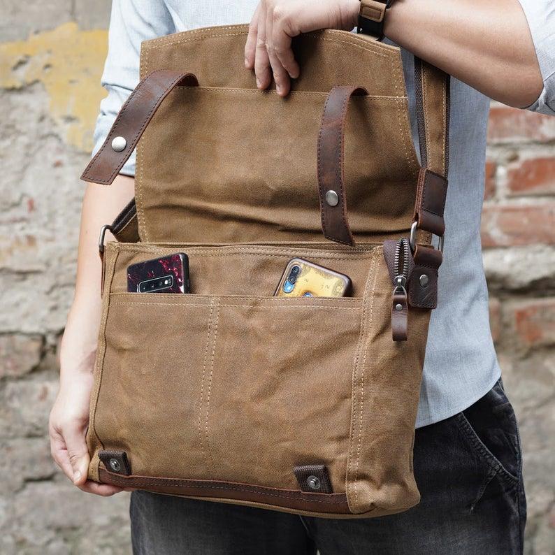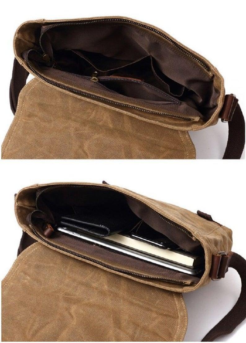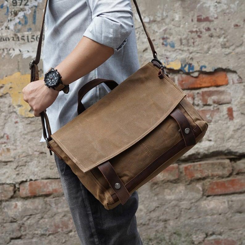 The Vintage Messenger Bag Canvas Crossbody for Men is a stylish and functional bag that is perfect for everyday use. It is made from a waxed canvas material that is waterproof and durable. The bag features a back zip pocket which can improve the safety factor of the messenger bag. The bag also comes with adjustable shoulder straps and a comfortable carrying handle. It is ideal for carrying laptops, books, documents, and other items.