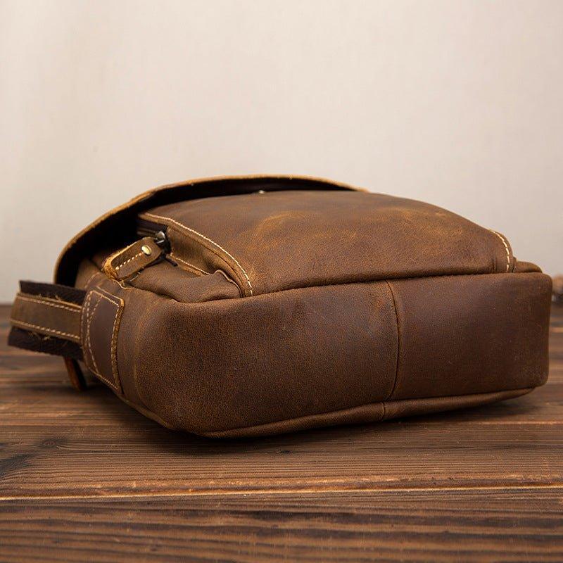 Classic & stylish anti-theft flap design with strong magnetic buckle, easy access to main compartment while keeping your stuff safe in bag. Vintage rough leather surface shows wild masculine charm, the men's messenger bag is suitable for daily use or travel.