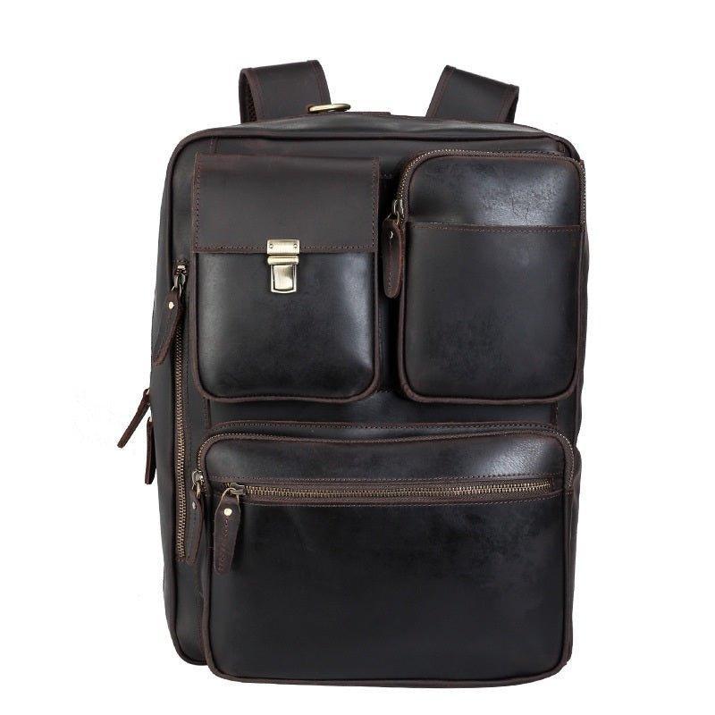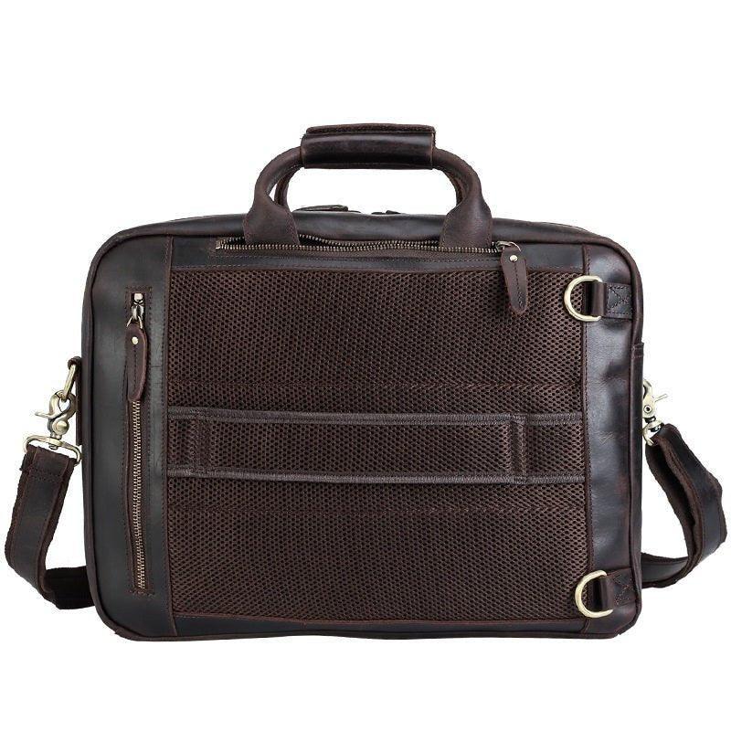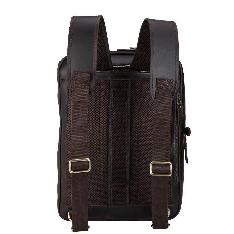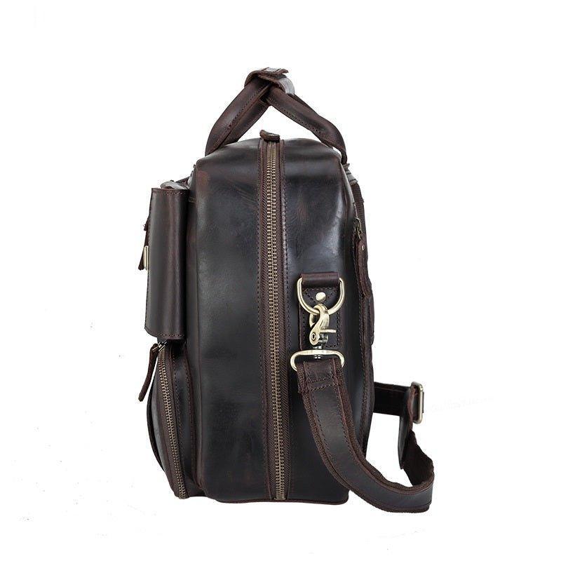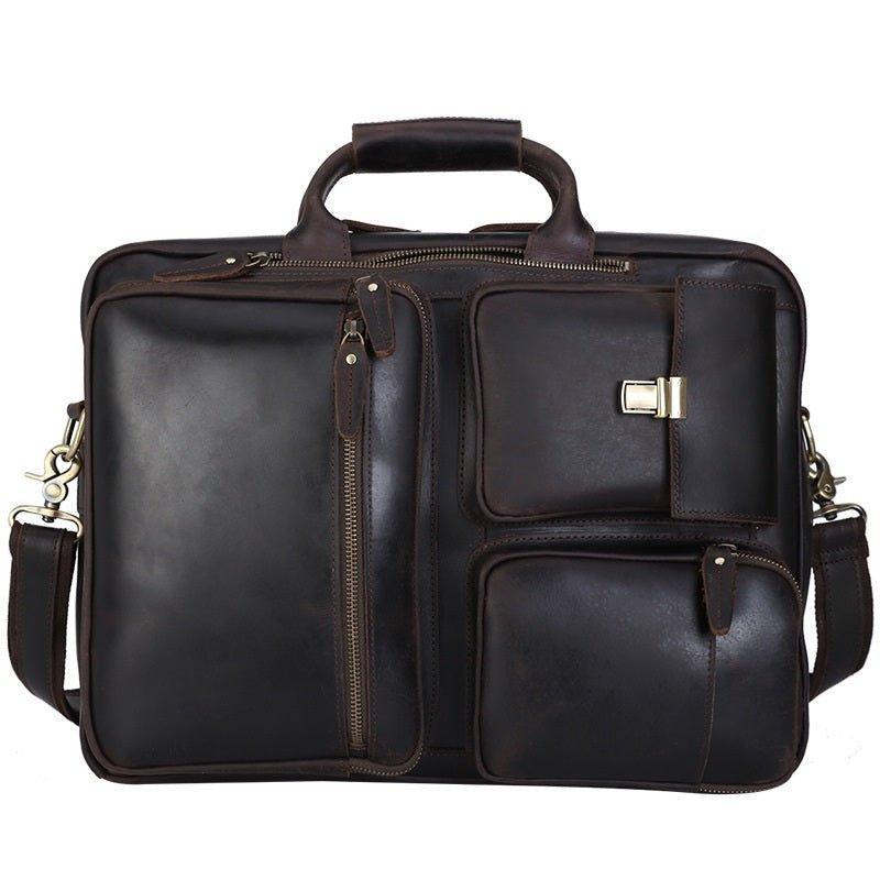 This is a leather briefcase backpack which has multiple pockets and functions for conveniently store and use,the more free places can make you carry more stuffs. Fits up to 17'' laptop.