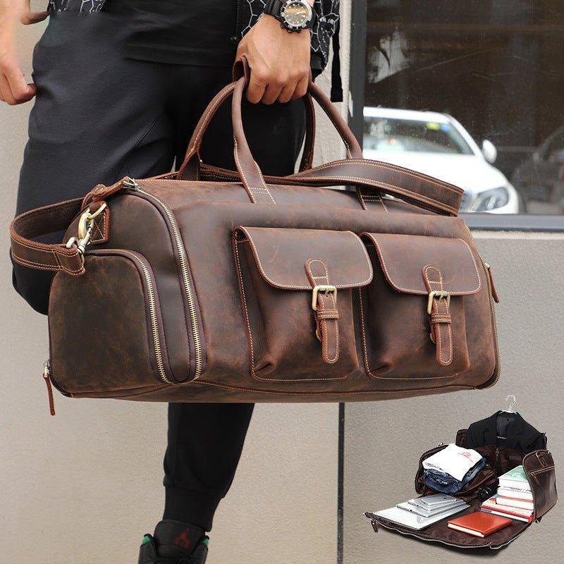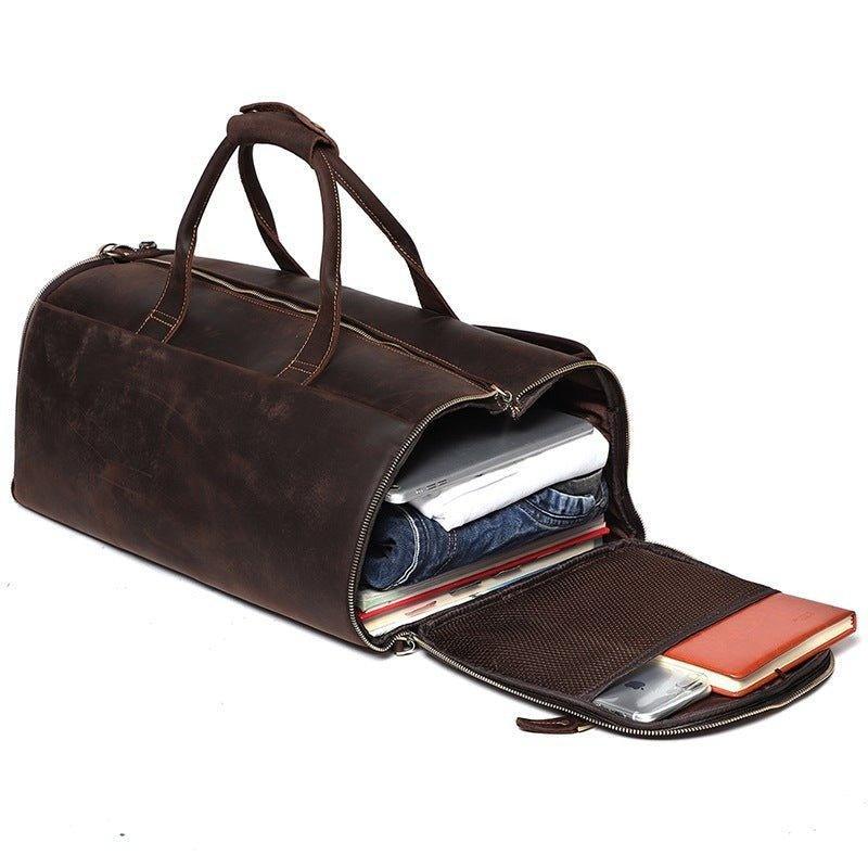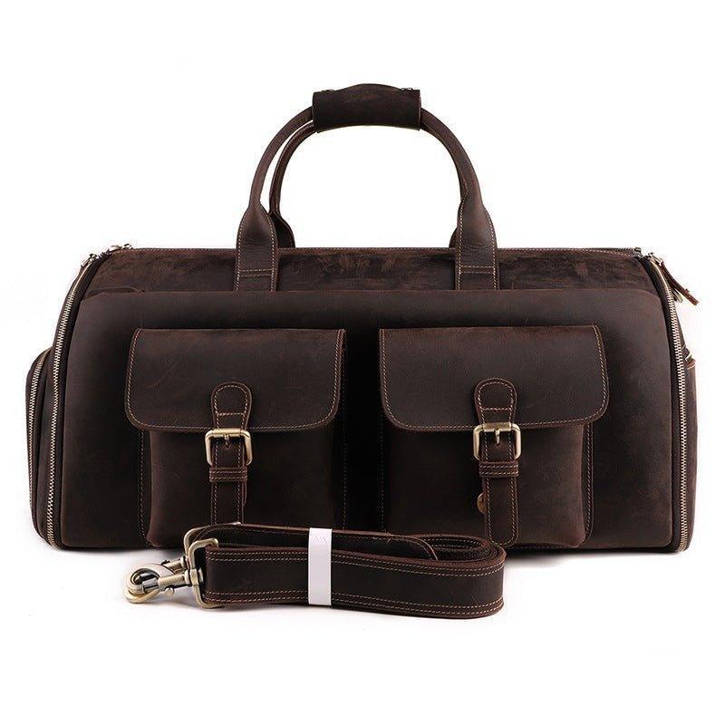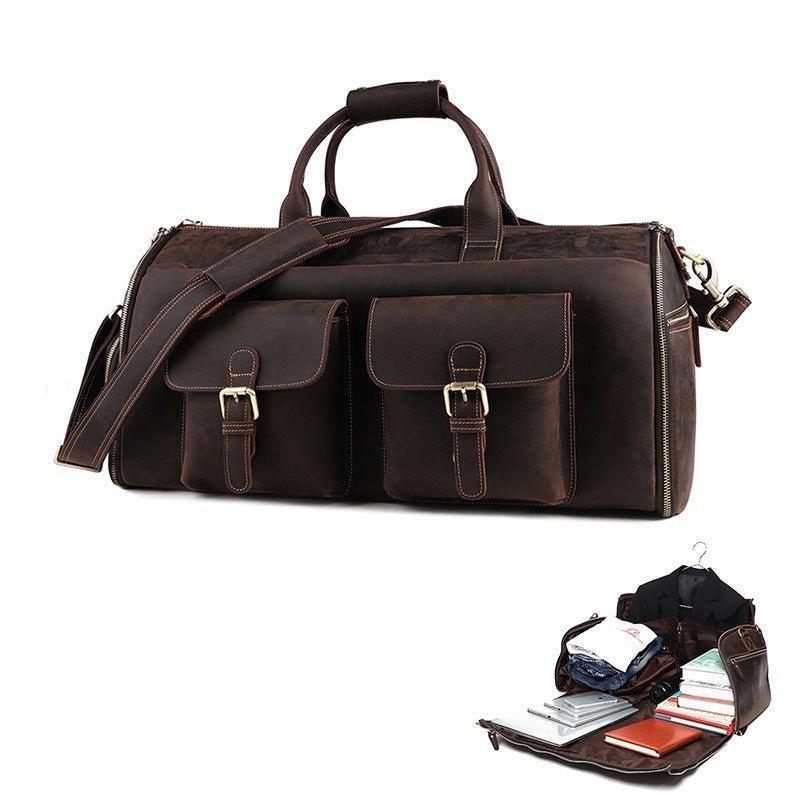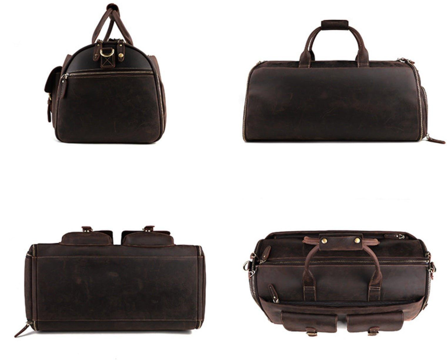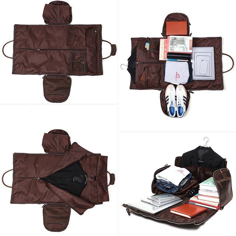 This leather garment bag for travel business is made of crazy horse leather.While open the garment bag and lay it out.it is a great hanging garment bags for travel.With this hanging garment bag,you can have a wrinlle-free suit or dress at any given time.
