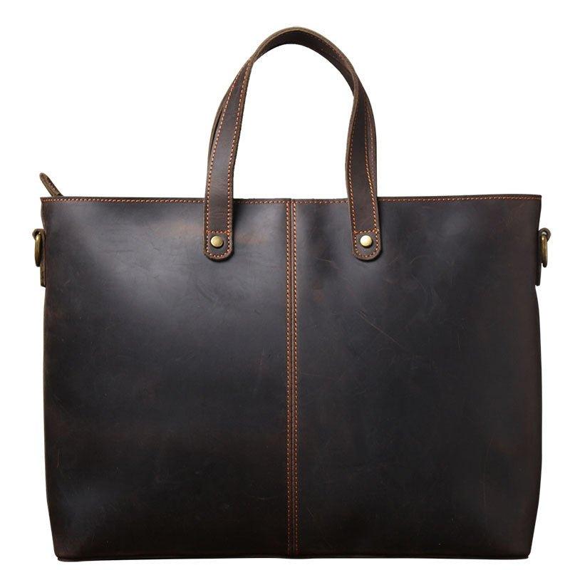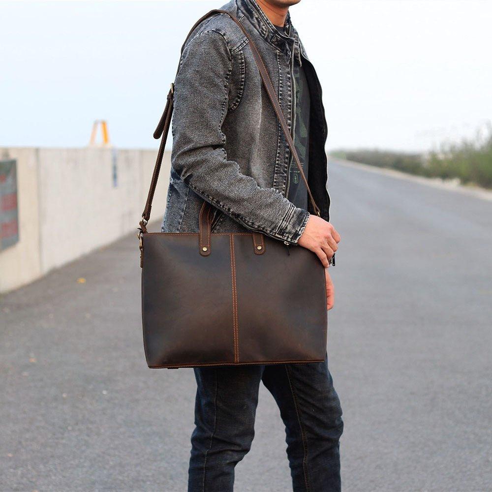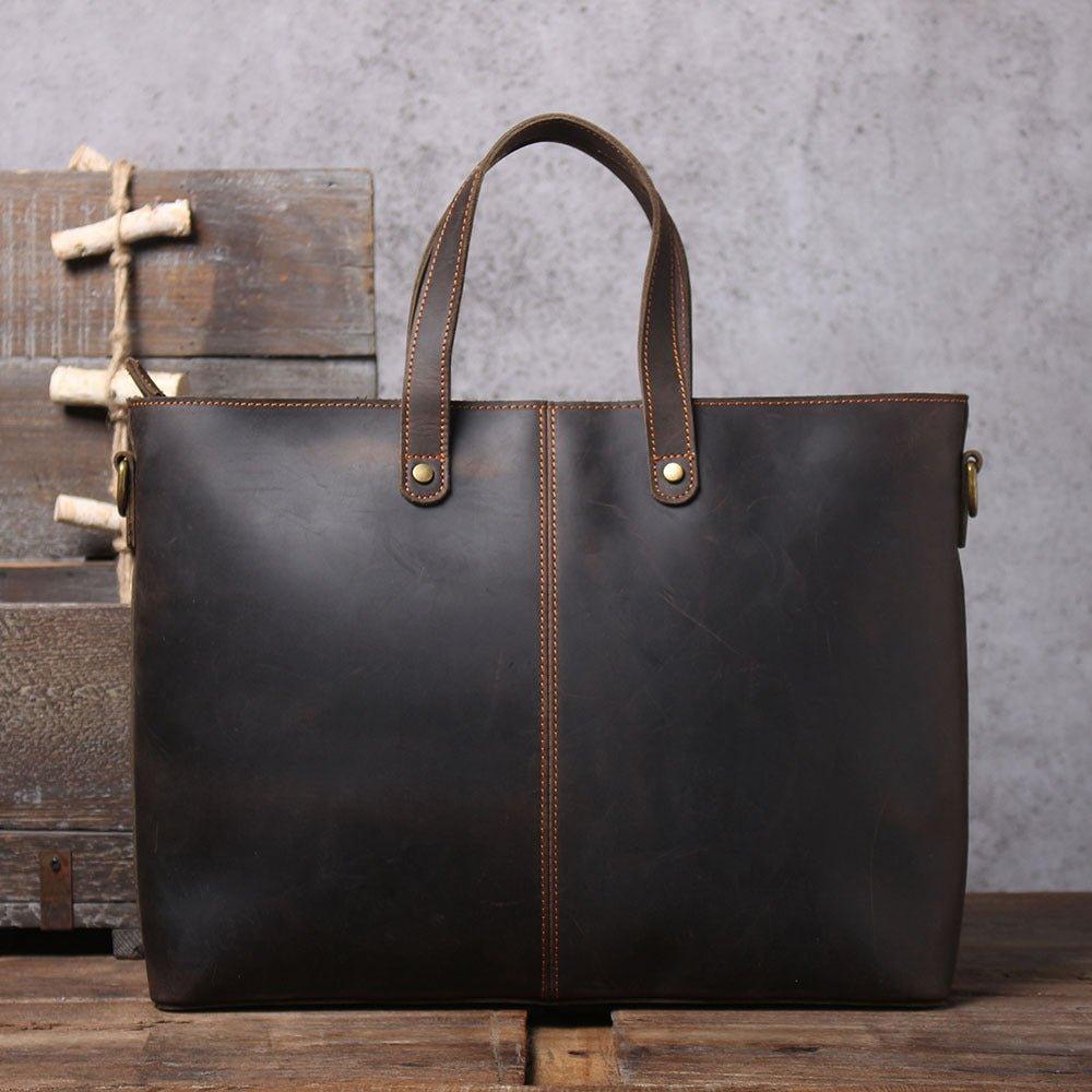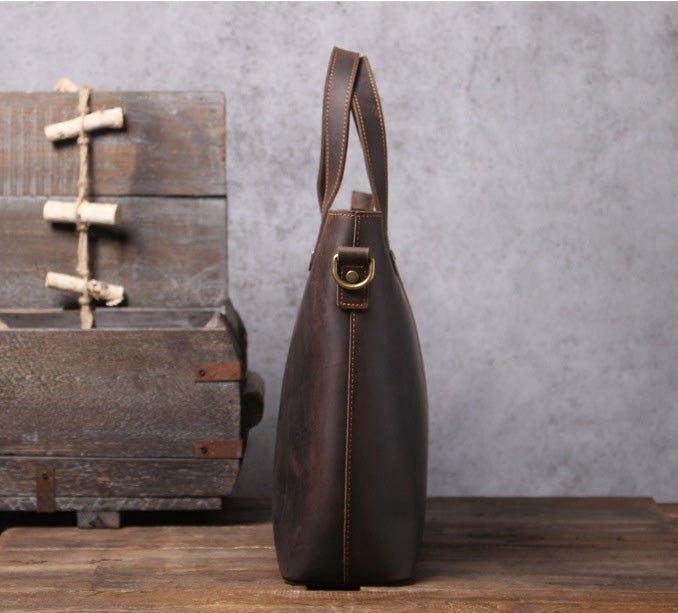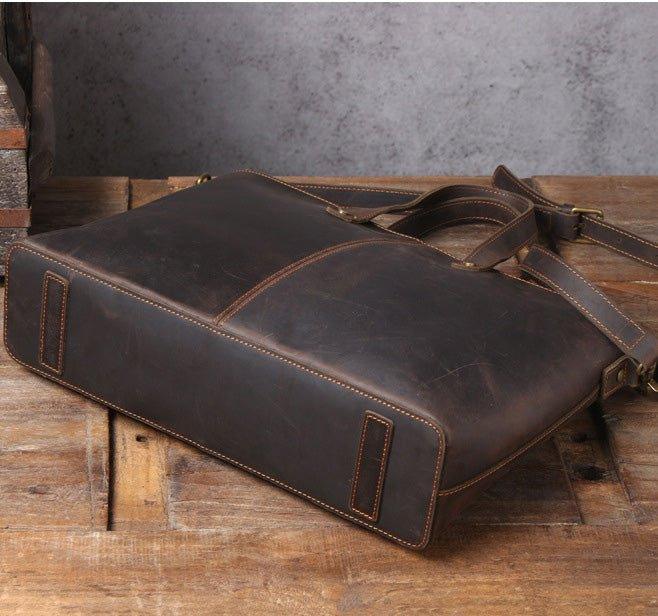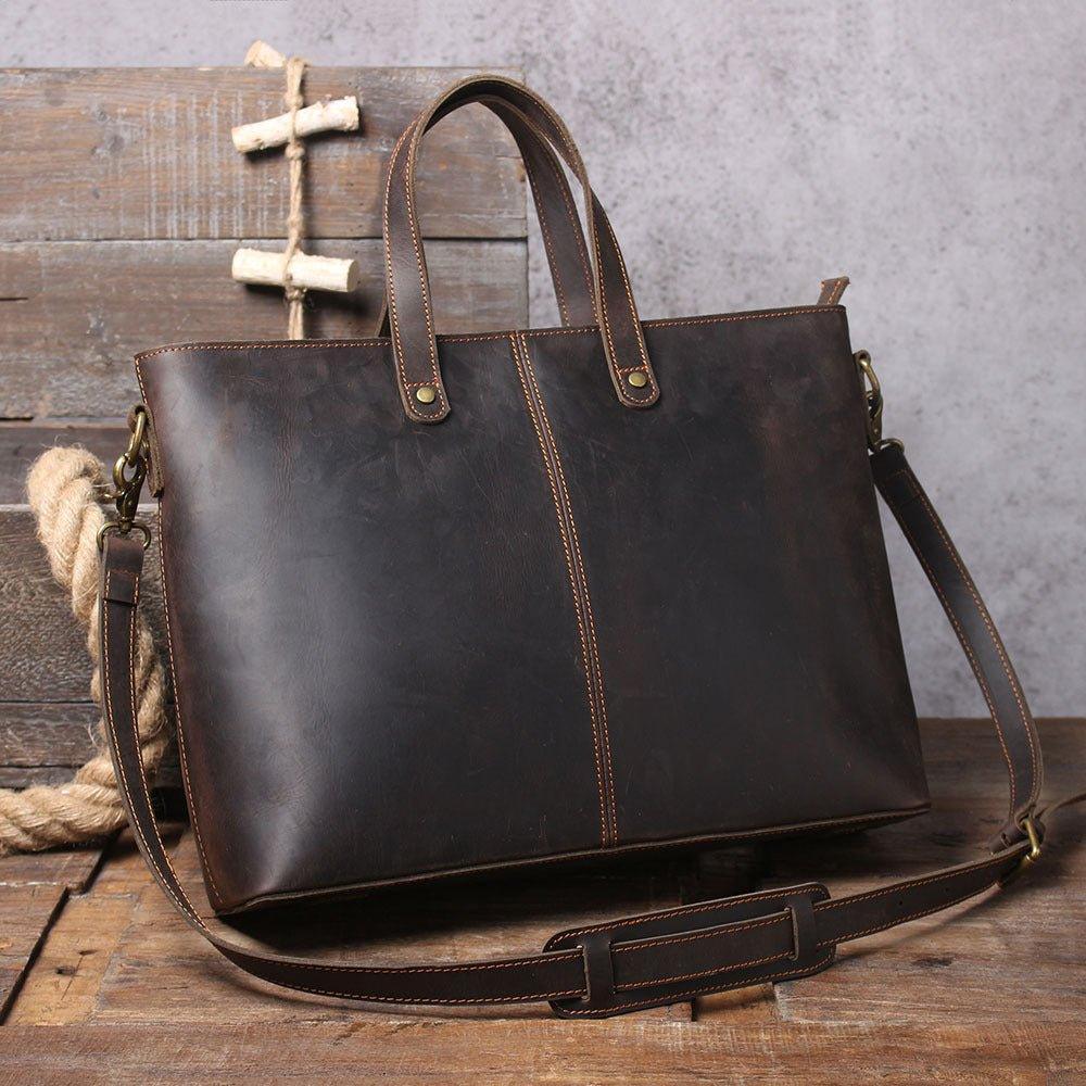 Woosir Mens Leather Laptop Briefcase Handbag Dark Brown