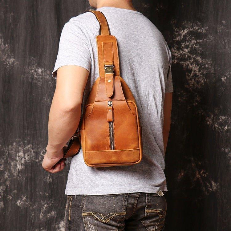 Men's Leather Sling Bag Chest Shoulder Backpack