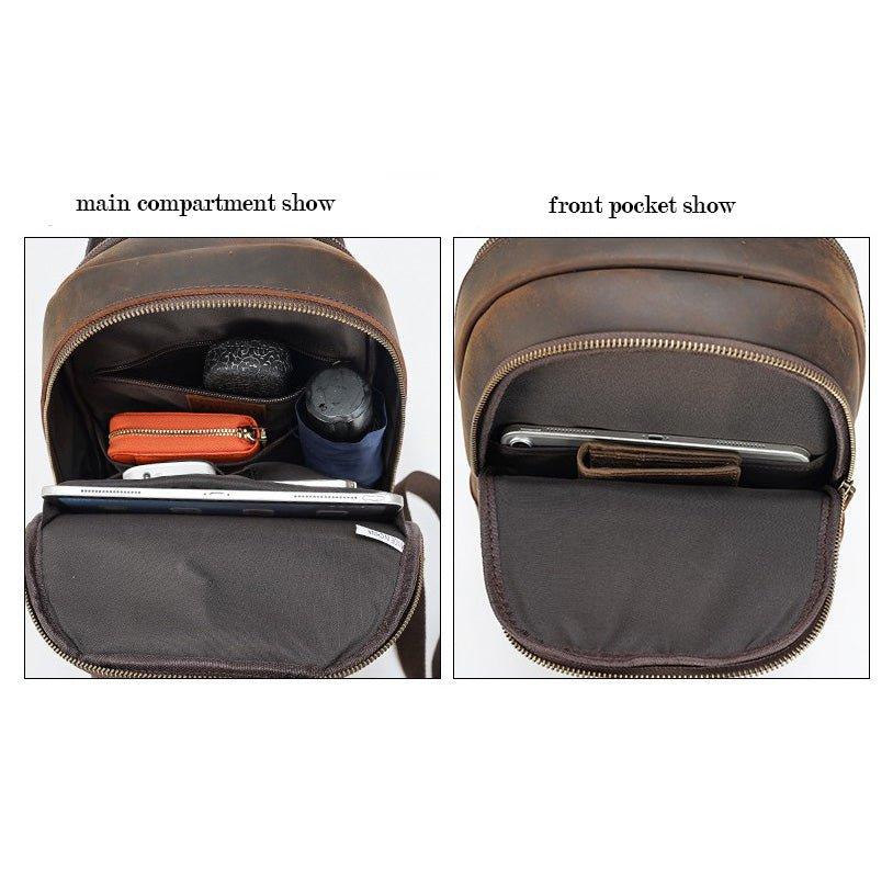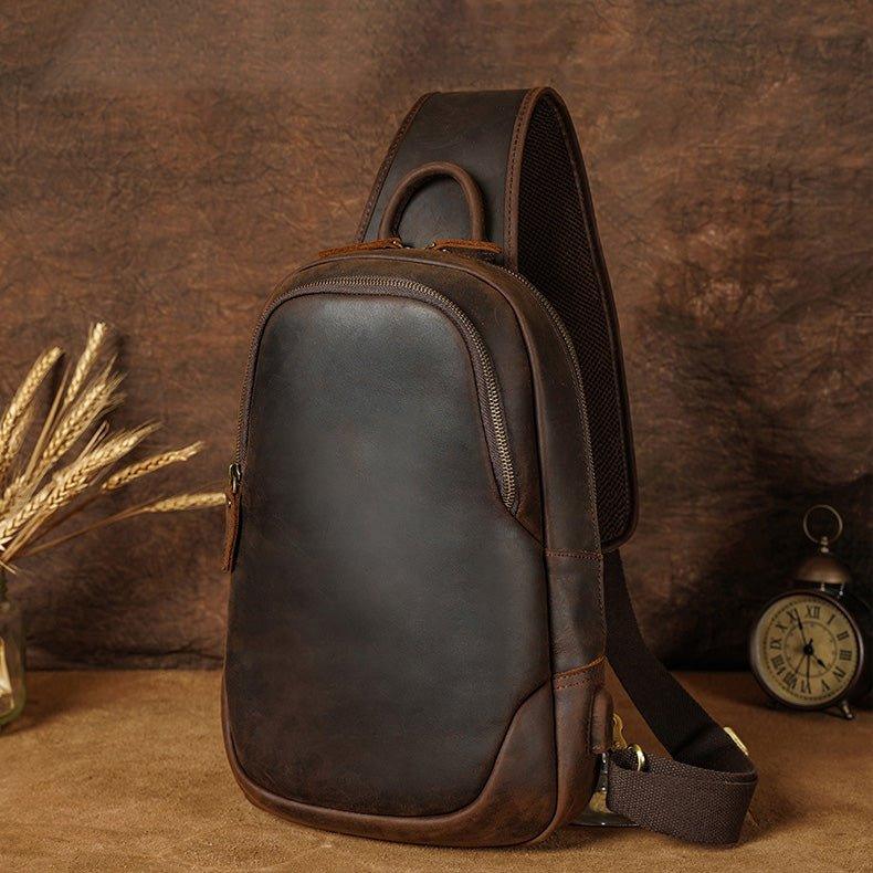 Men's Leather Sling Chest Pack with USB Port