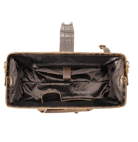 100% leather shoulder strap – The adjustable shoulder strap and carrying handles are 100% leather. Besides inside liner, this bag is all full grain leather.