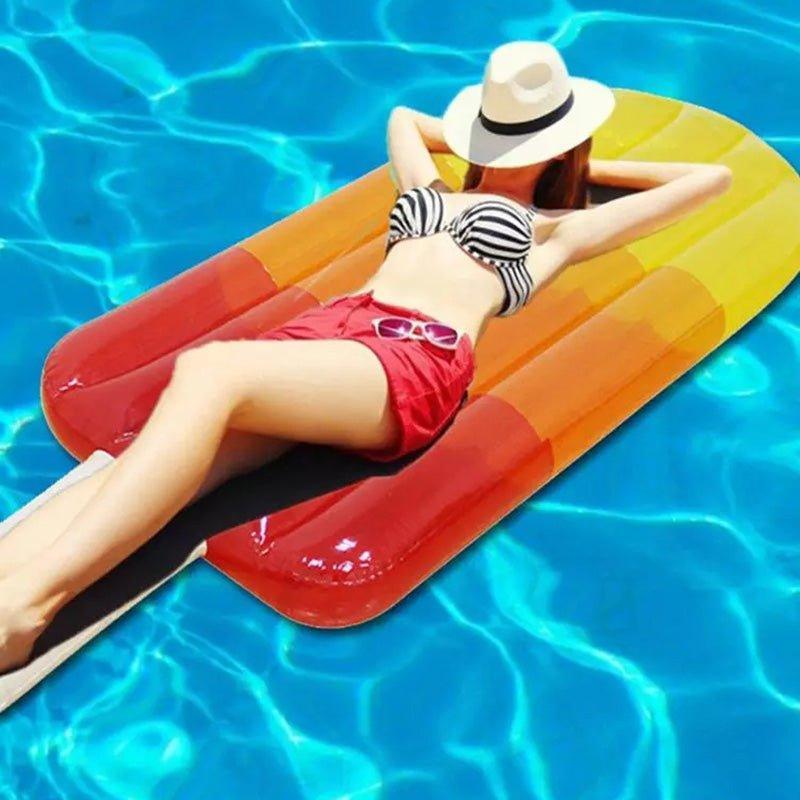 - Inflatable Lounge Chair: The oversized ice lolly lounge chair can be inflated up to 6 feet long, which is a big step for swimming pool entertainment.