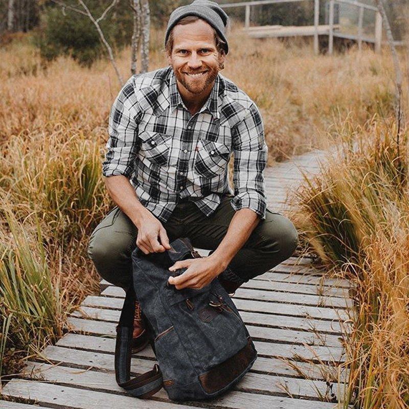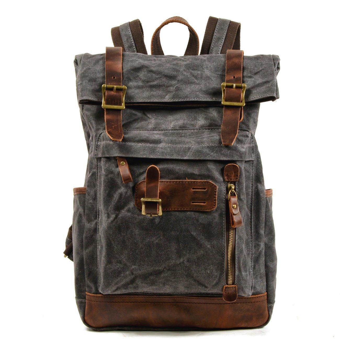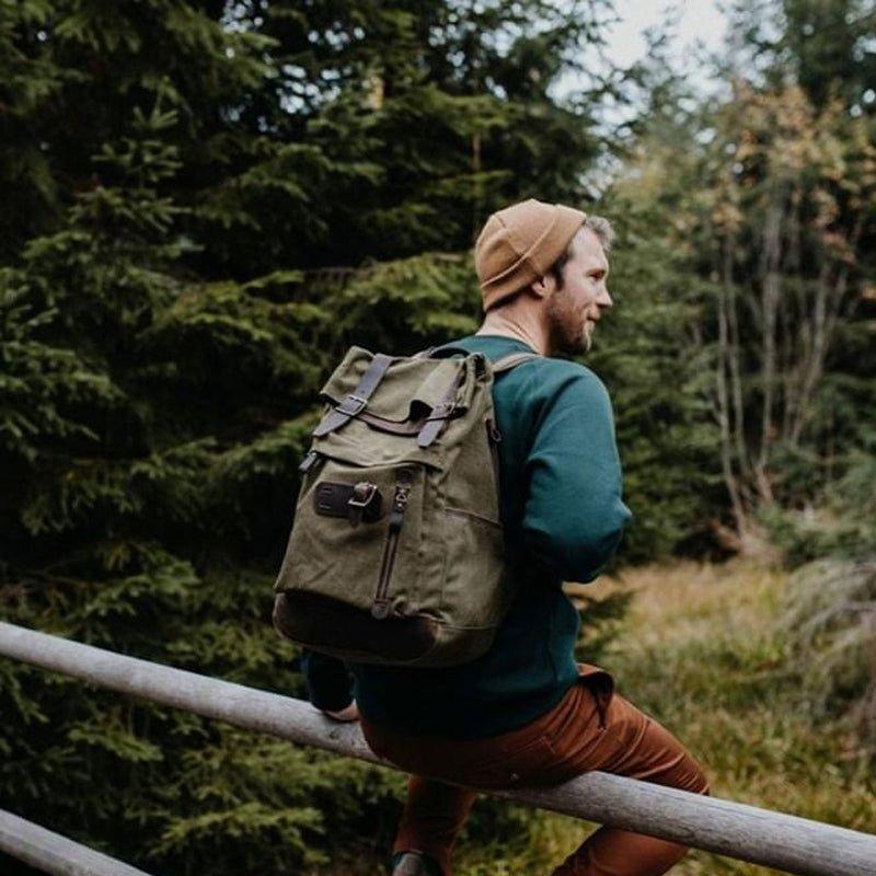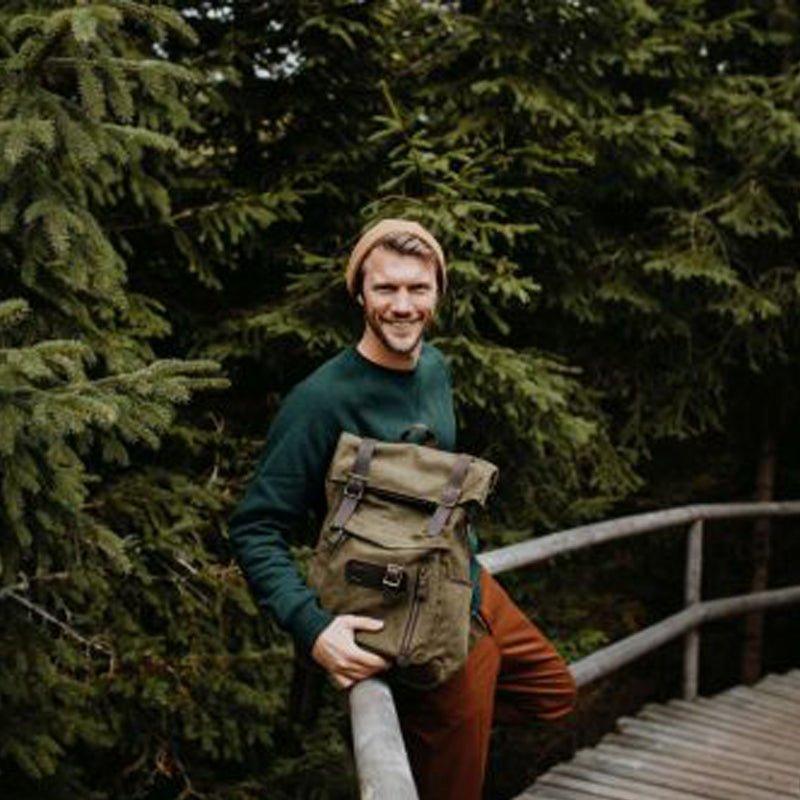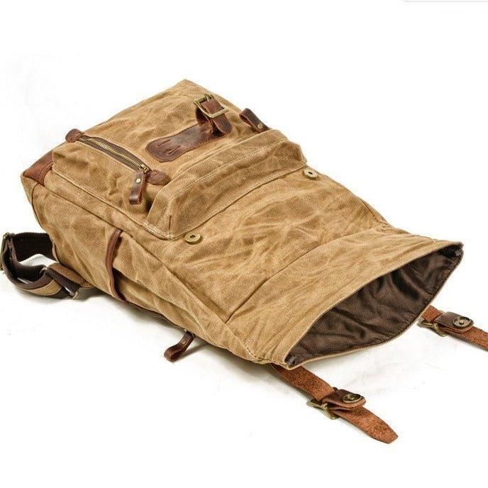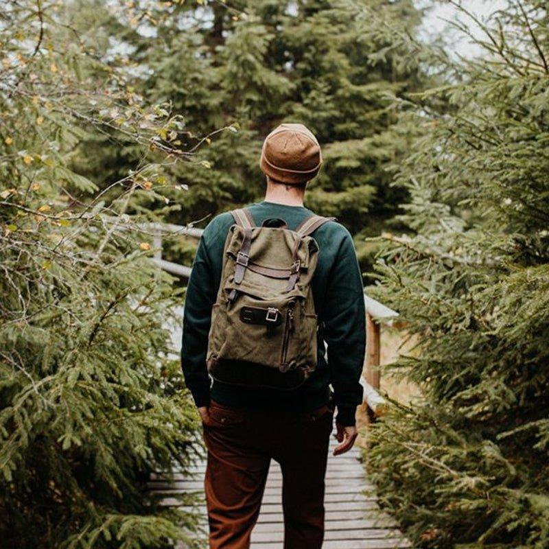 Roll Top Vintage Backpack Waxed Canvas with Laptop Sleeve