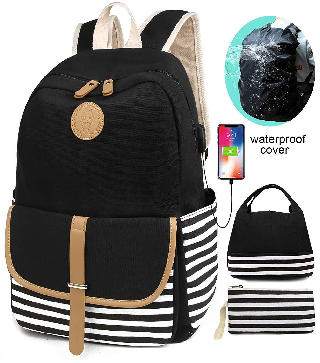 This Lightweight backpack for women/men/girls/teens is made of high density canvas and well sewn craftsmanship to be more durable, features durable zippers which secure your essentials and valuables, mercerized cotton lining in force points of backpack prevents deformation and extends its lifeWe prepare a suitable size waterproof cover for this backpack which can avoid your school bags being soiled.