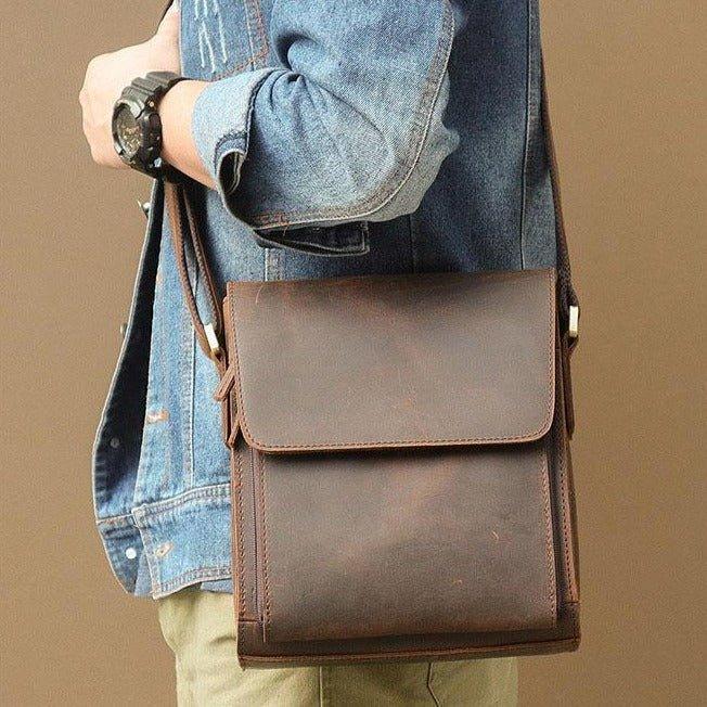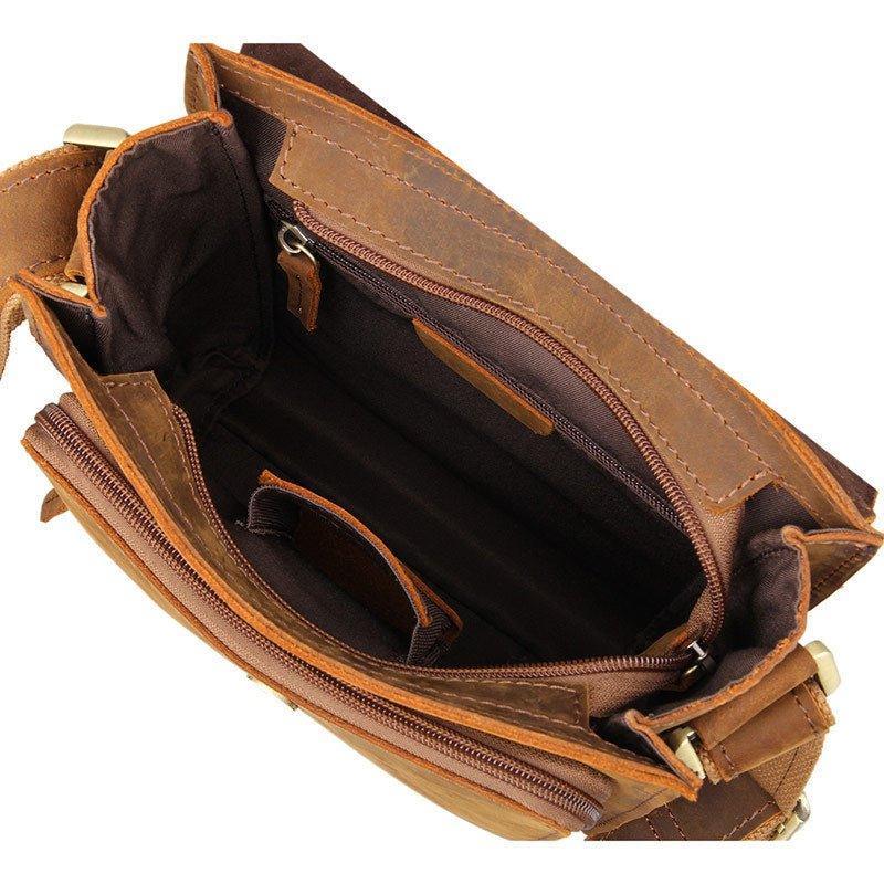 This popular vintage messenger bag is made in crazy horse leather. The interior lining is made of a thick and long lasting cotton.