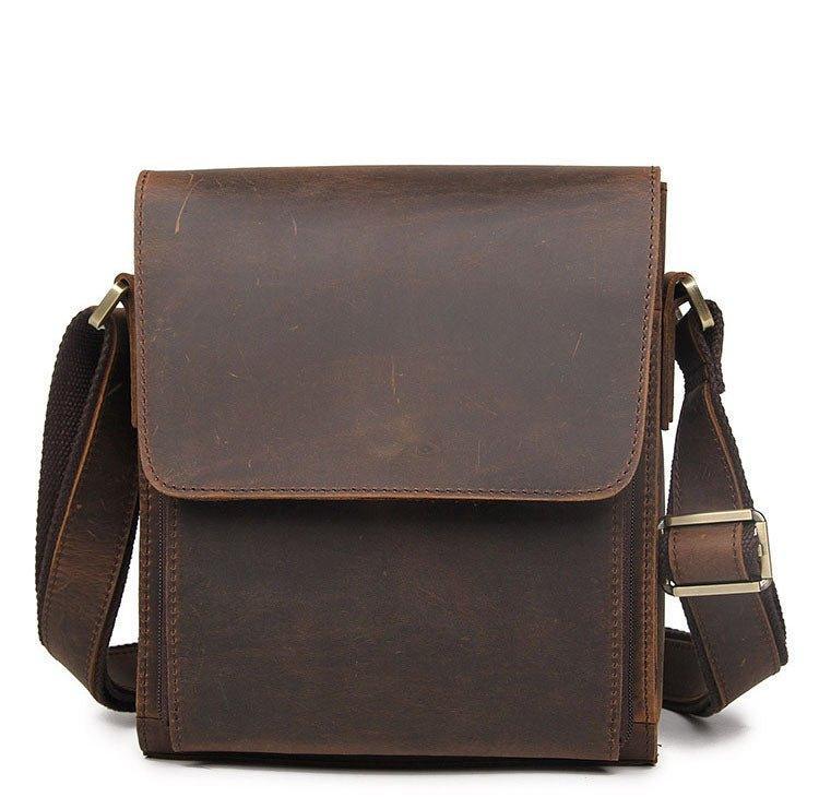 This small messenger cross body leather bag has that difficult-to-achieve leather cross body messenger look while being urban & hip; with brass buckles & fittings, heavy-duty lining & stitching, and YKK Zippers.