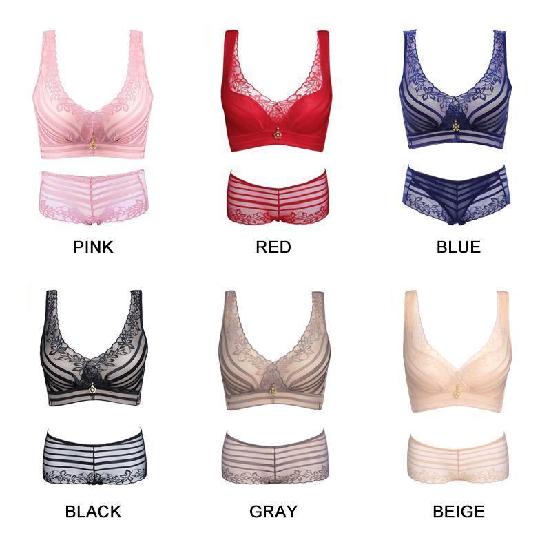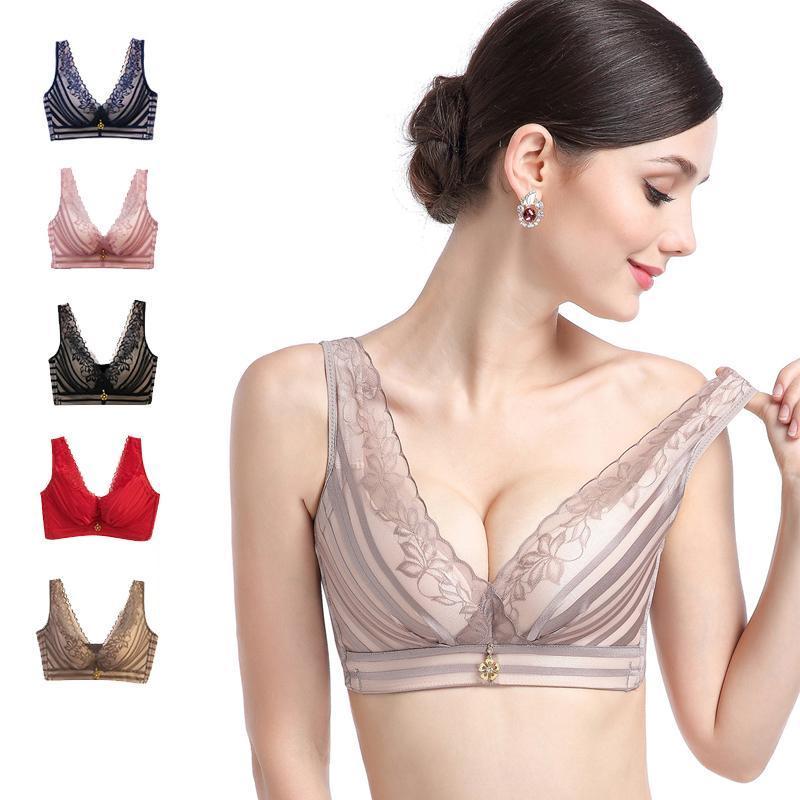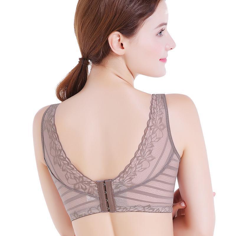 Libiyi-Stripes Lace Push-Up Seamless Breathable Zipper Bra