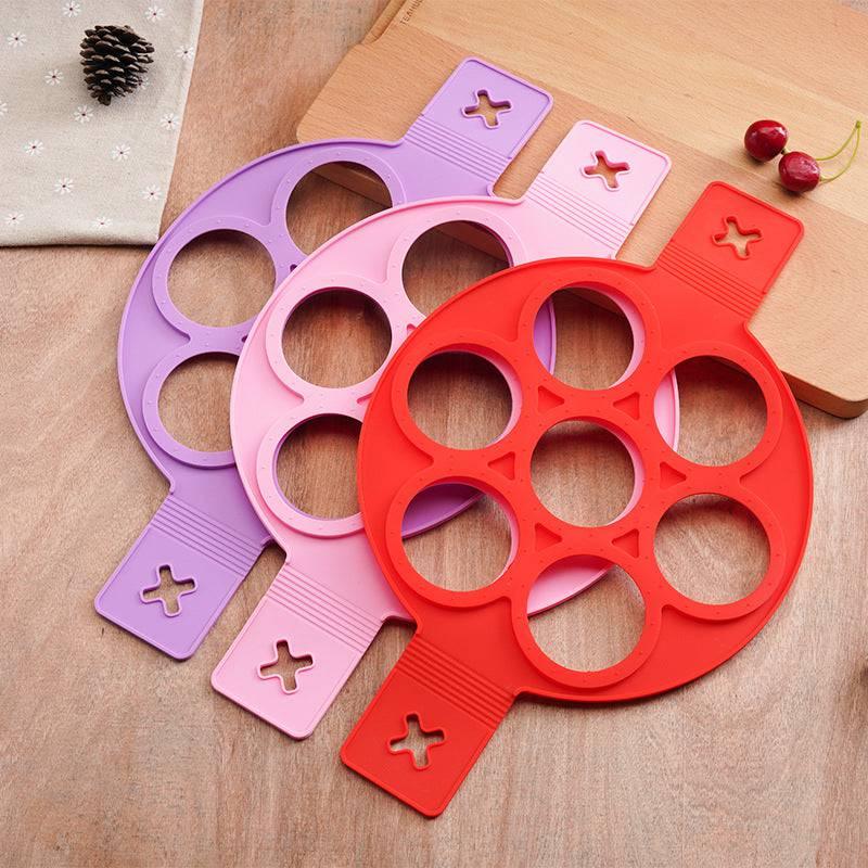 This Nonstick Pancake Mold has 7 round rings, separate food from each ring which diameter is 3in, fantastic fast way to make perfect sized pancakes.