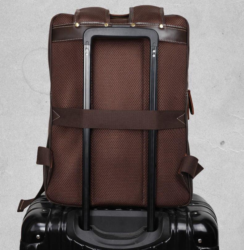 The mens leather backpack is the strongest and most durable leather.Additionally,since the grain is so tight,it resist moisture very well.A luggage strap allows leather computer bag for men fit on luggage,slide over the luggage upright handle tube for easier carrying.