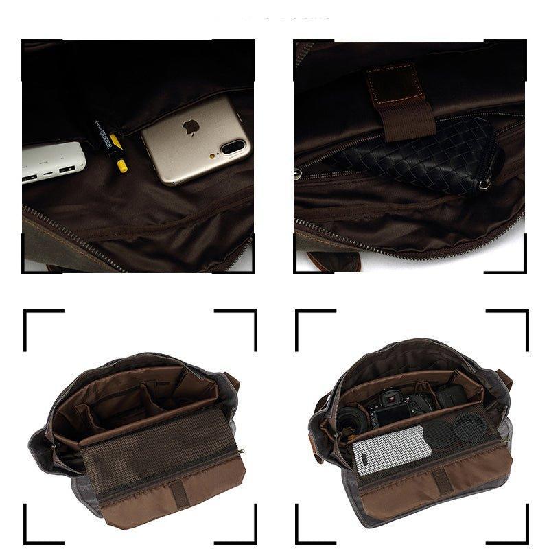 This Messenger Camera Bag features a retro minimalist design with a thick shoulder strap handle for added comfort. It also has multiple pockets for easy organization and storage of your camera accessories. The adjustable straps and ergonomic design make it comfortable to carry, even when fully loaded.