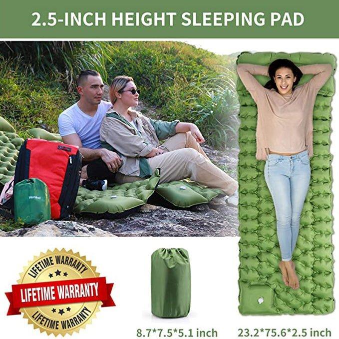 - 100% HASSLE-FREE LIFETIME REPLACEMENT: Camping sleeping pads are carefully inspected before shipping to ensure that they are in perfect condition, especially since so many buy it as gifts. Your sleeping pad is built to last and provide you with as many great nights of sleep as possible. If we don’t live up to any of these promises, we insist that you contact us so we can send you a new replacement---no need to return, if you aren't happy with your purchase, we will full refund your money