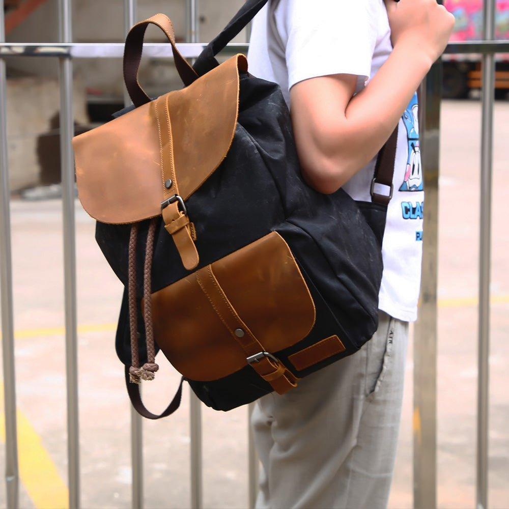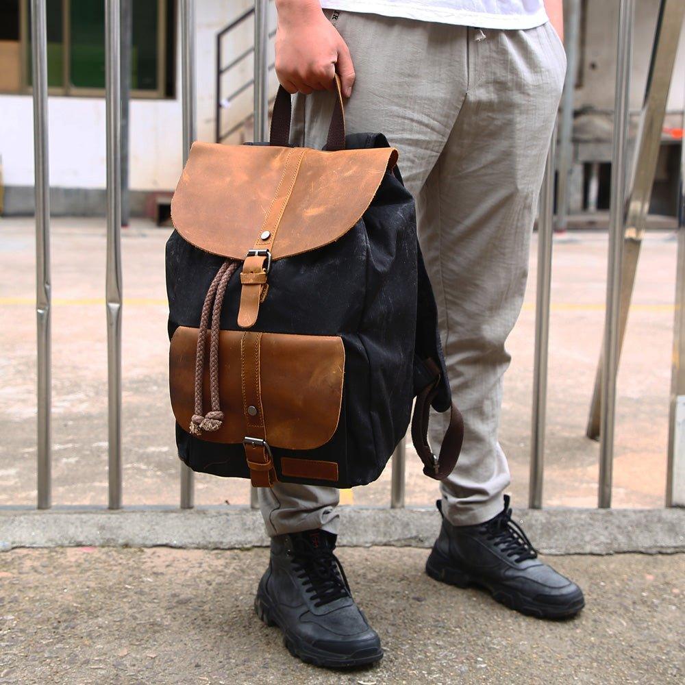 High density waxed canvas matching with retro premium quality cow leather make this backpack looks more elegant and fashionable