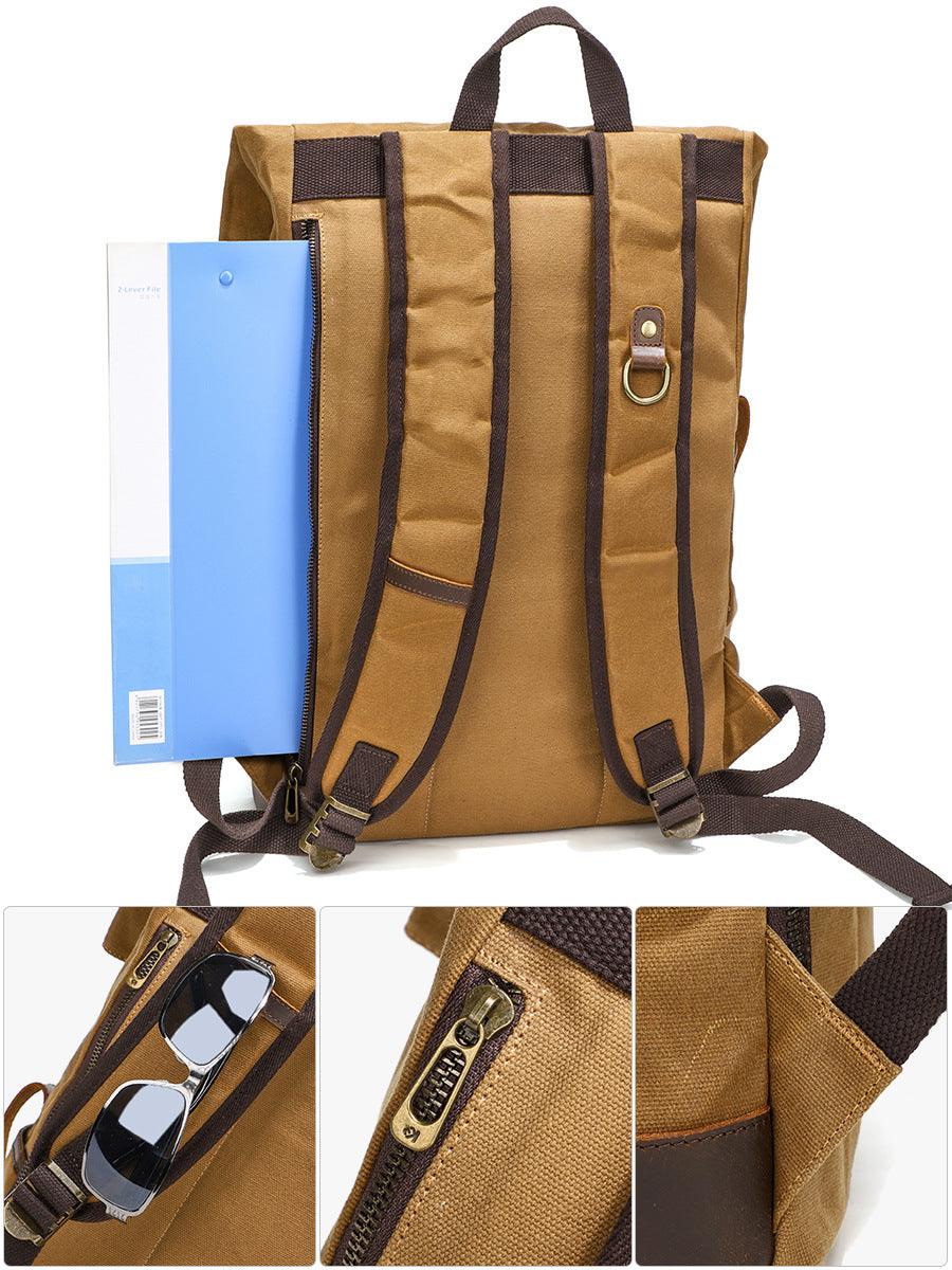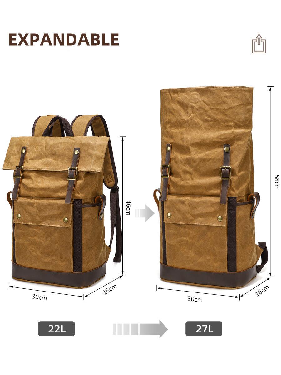 Premium Waxed Canvas: Crafted from high-quality waxed canvas material, this backpack not only looks stylish but also offers exceptional water resistance. It can withstand light rain showers and keep your belongings dry.
