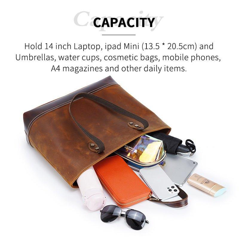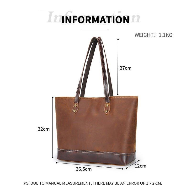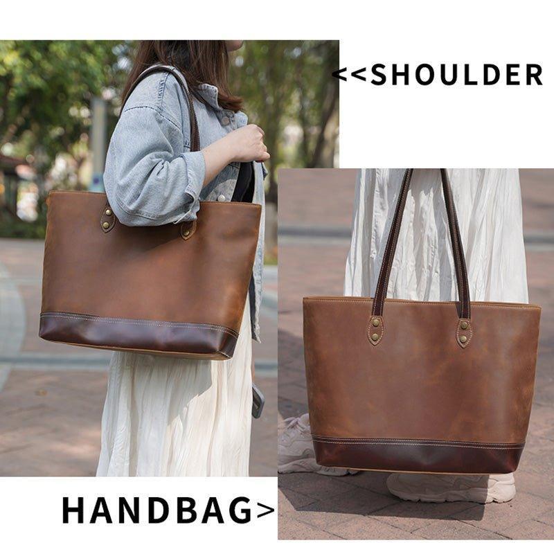 - Top Quality: The tote handbag is made of genuine leather by professional artisans. Zippered opening closure.- You can comfortable with the handbag in 2 ways: tote and shoulder.