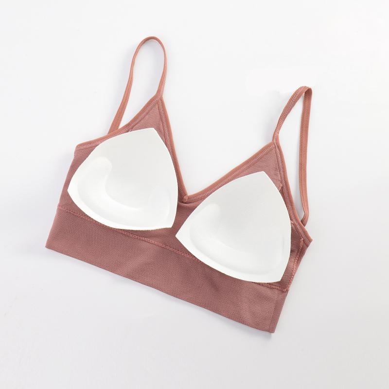 Removable soft cup pads with a material like cotton for improving coverage and keeping shape; Bra without underwire and seamless design to minimize chafing, soft and comfortable to wear.