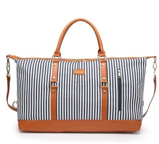 The travel duffel bag made of durable and soft canvas, quality smooth heavy-duty zippers, PU Leather Trim