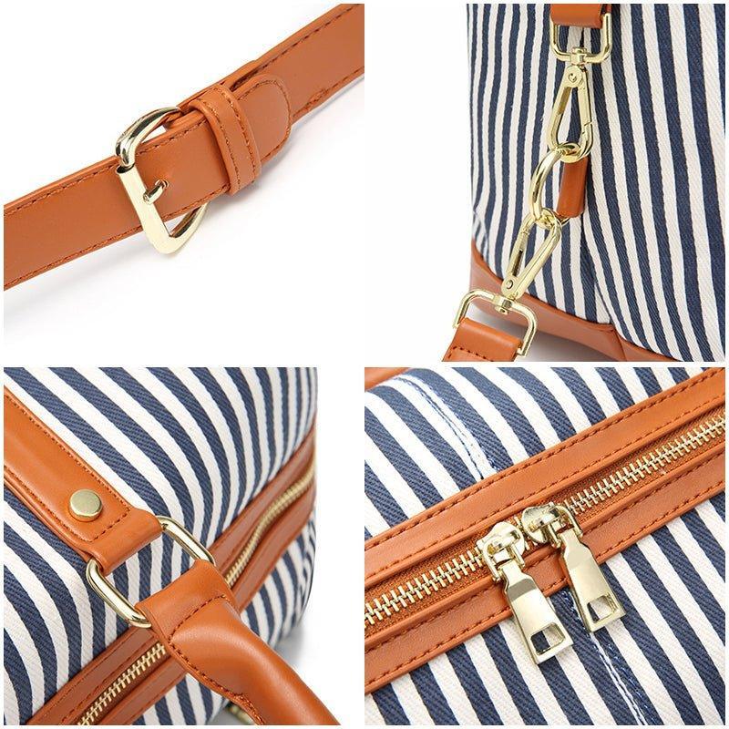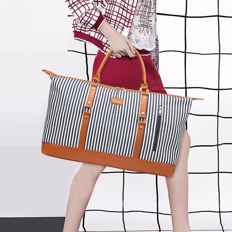 Women duffle bag is made of durable and soft canvas, 100% Cotton lining, quality smooth heavy-duty dual brass zippers, comfortable and durable.