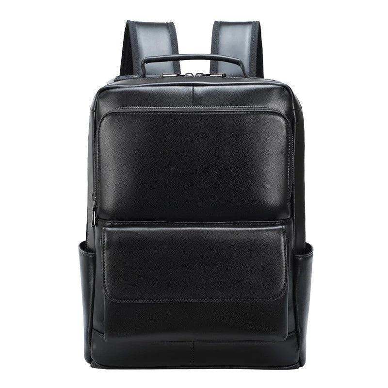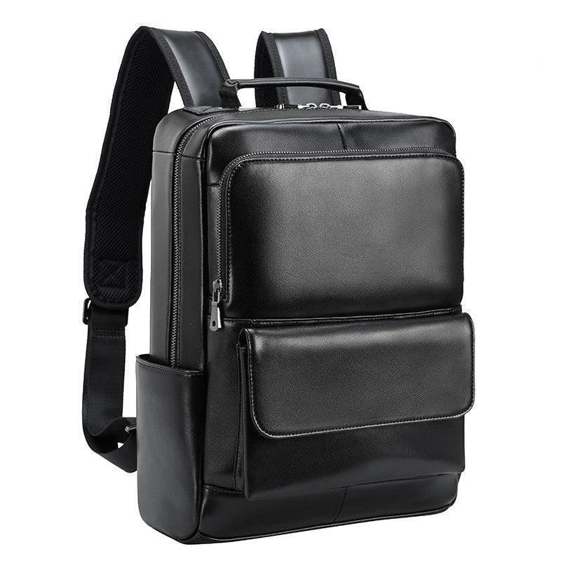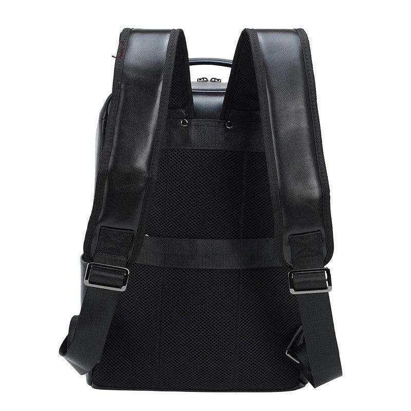 This black leather laptop backpack is reinforced with hardware at shoulder straps and the zipper connection,making it sturdy and durable.In addition,the stylish design of this bag will keep you trandy.It’s a great idea as a gift for your husband,son and friends.