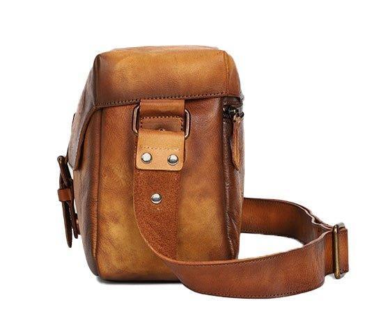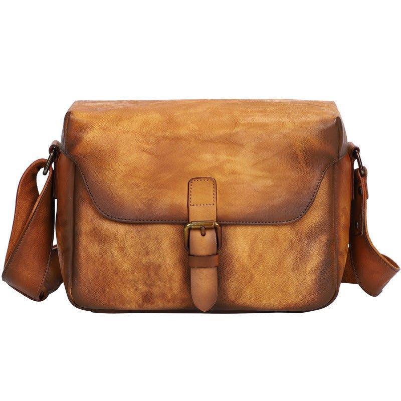 This leather camera bag is lined with heavy duty shock resistant material to better protect your cameras from the occasional drop bump or accident.