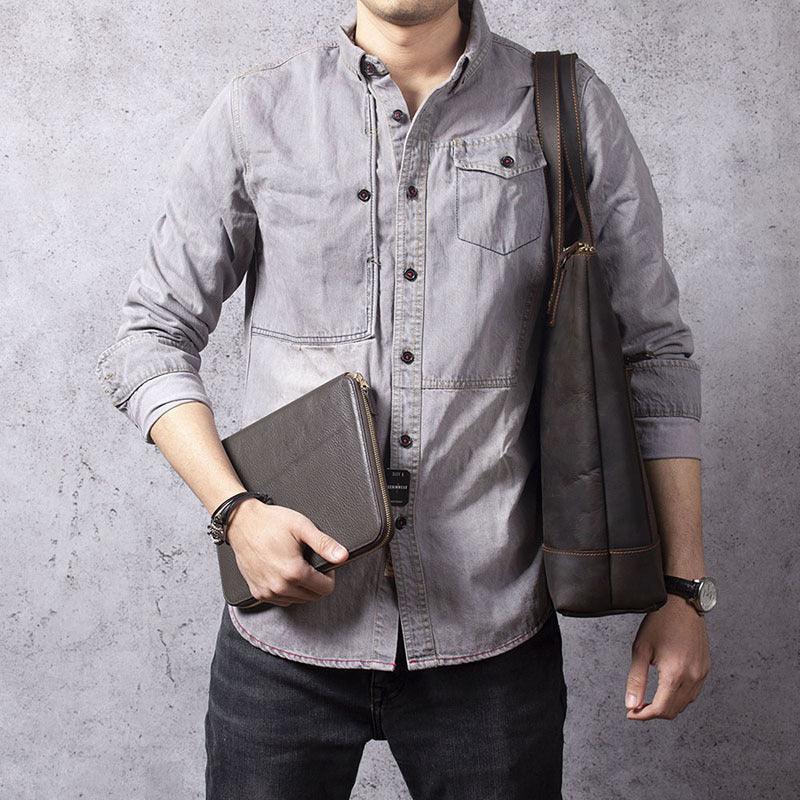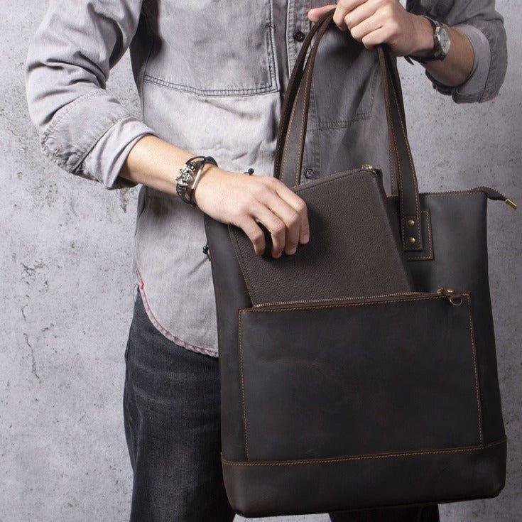 Rivets to reinforce the stress areas of the shoulder straps and double thickened pure leather shoulder straps make this tote bag for work can be used for a lifetime.