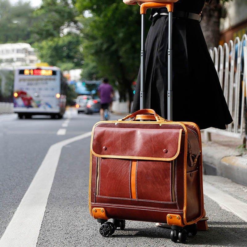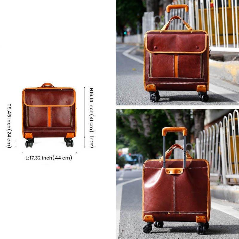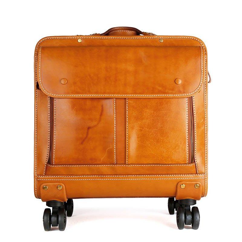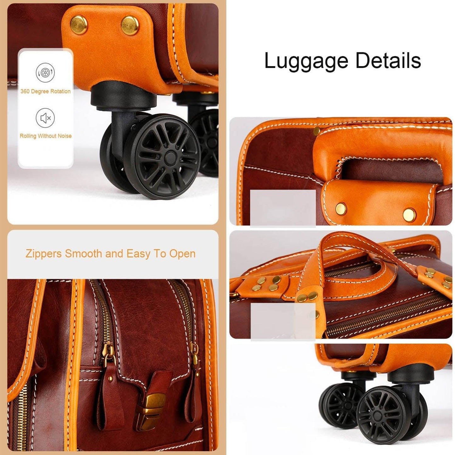 Woosir Vintage Leather 20 Inch Luggage On Wheels