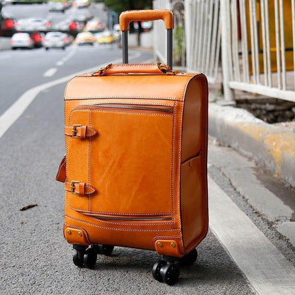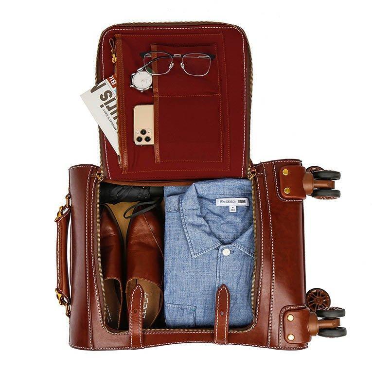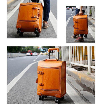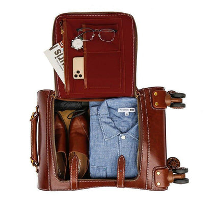 Woosir Vintage Leather Suitcase 20 Inch Travel Luggage