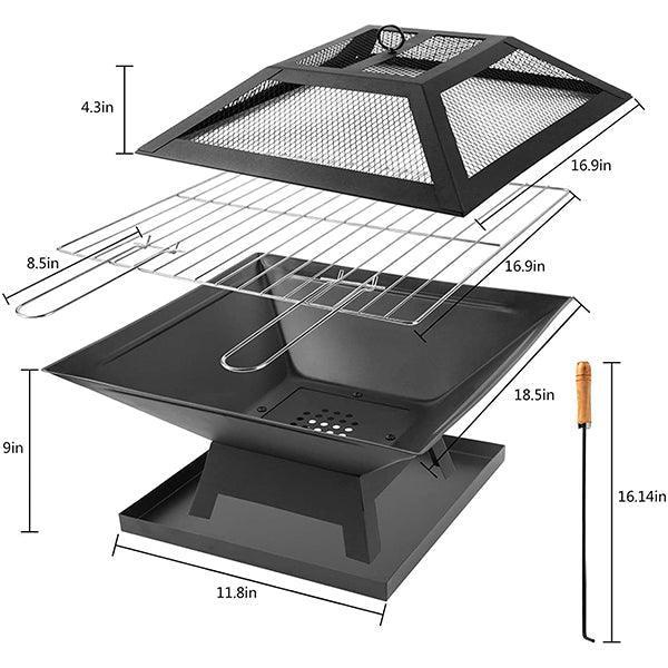 Pieces Included: Fire pit*1 Mesh cover*1 Poker*1 Grate*1